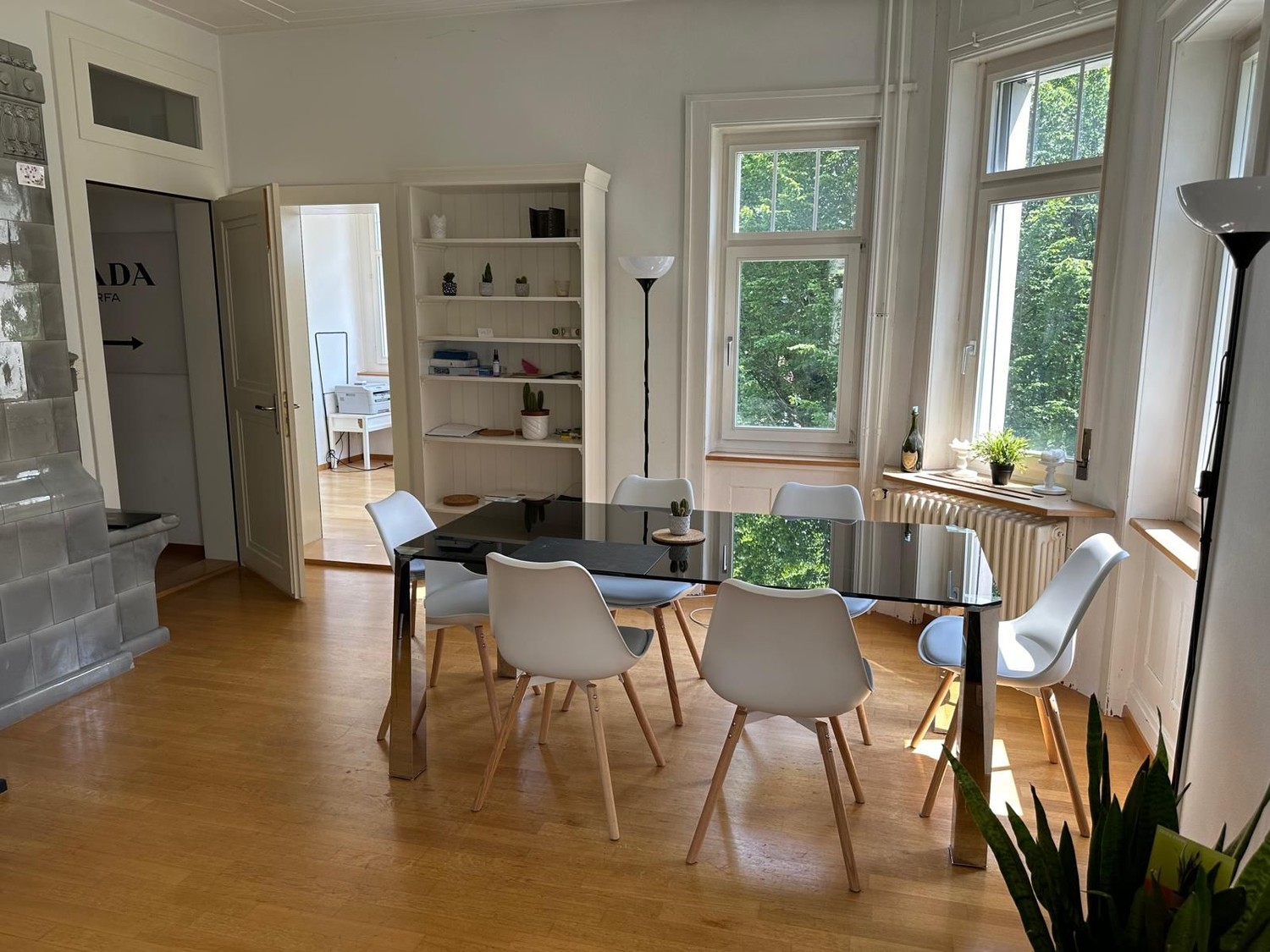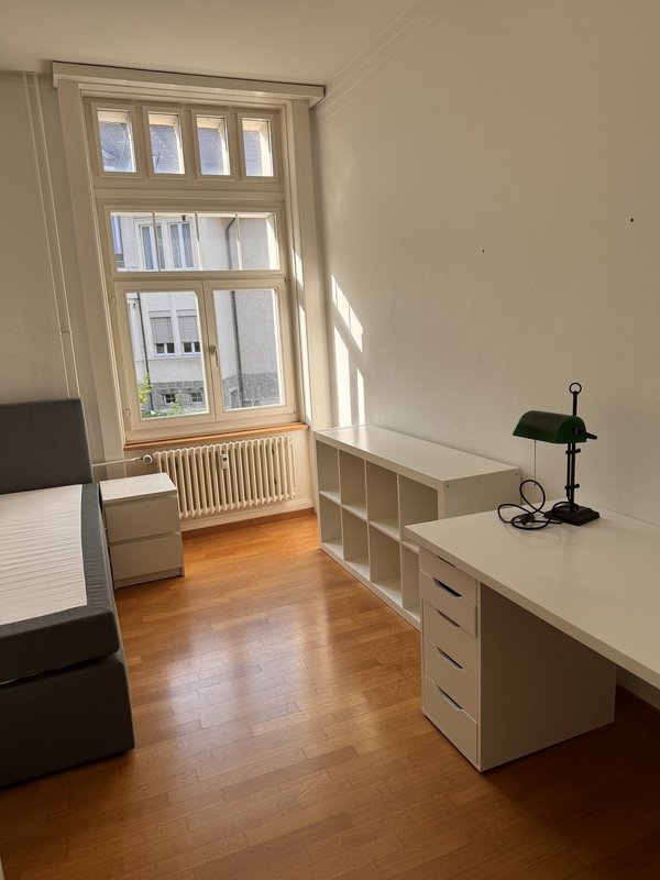 The room is in the 1. OG of the Wartensteinstrasse 2, about a 4 min walk from Uni and 100 meters from the Uni-Dufourstrasse bus station (bus 5).