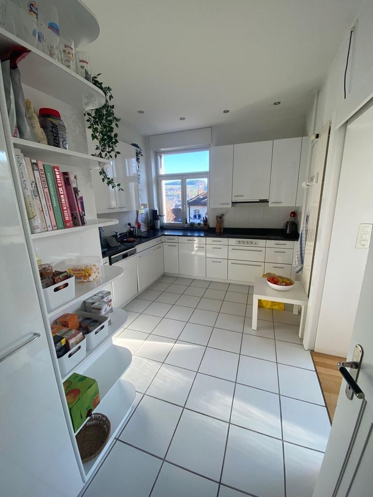 Die Wohnung hat eine grosse Küche mit allen Geräten, die man sich wünschen kann, ein grosses Wohnzimmer und einen extra Raum, der mit Sofa ebenfalls zum Verweilen einlädt. Die Wohnung verfügt über zwei voll ausgestattete Badezimmer. Es gibt ein extra Kellerabteil für unsere WG mit einer eigenen Waschmaschine und Wäschetrockner, die kostenlos genutzt werden können. Dieser Kellerraum ist auch perfekt für das Lagern von Skiern, Fahrrädern, etc.