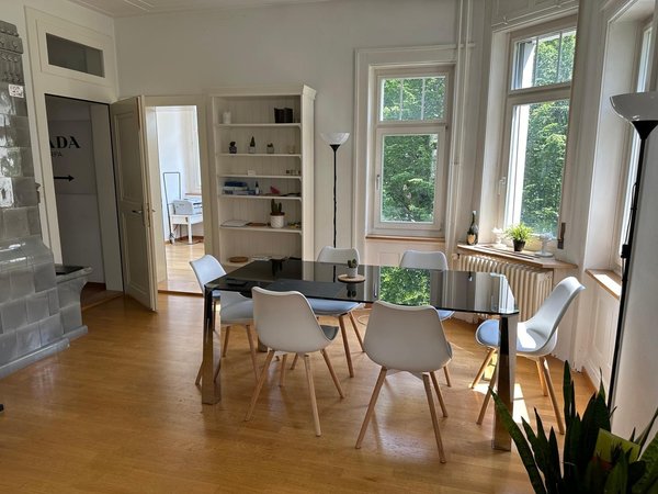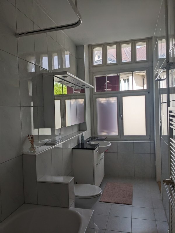 The apartment has a large kitchen with all appliances you can ask for. The large living room is the center of our WG life. The apartment has two full bathrooms. There is a basement section exclusively for our apartment with a washing machine and tumbler that can be used free of charge. This room is also ideal for storing your skis, bike, and other bulkier items.