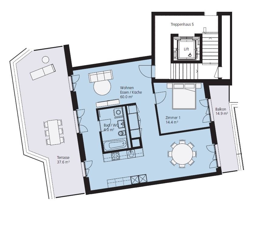 - 37m2 grosse Terrasse und zusätzlicher Balkon zum Innenhof