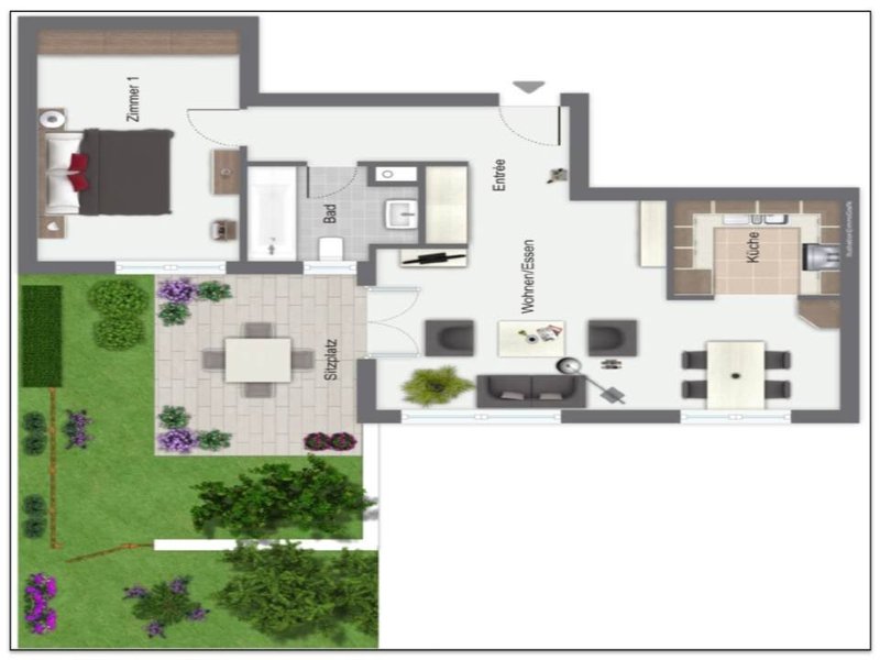 · Terrasse: Grosszügige Terrasse mit ganztägiger Sonneneinstrahlung und Blick ins Grüne.
