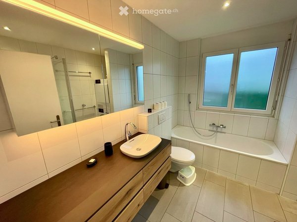 - ein neu renoviertes Badezimmer mit WC, Badewanne und Dusche (+ Waschmaschine & Trockner)