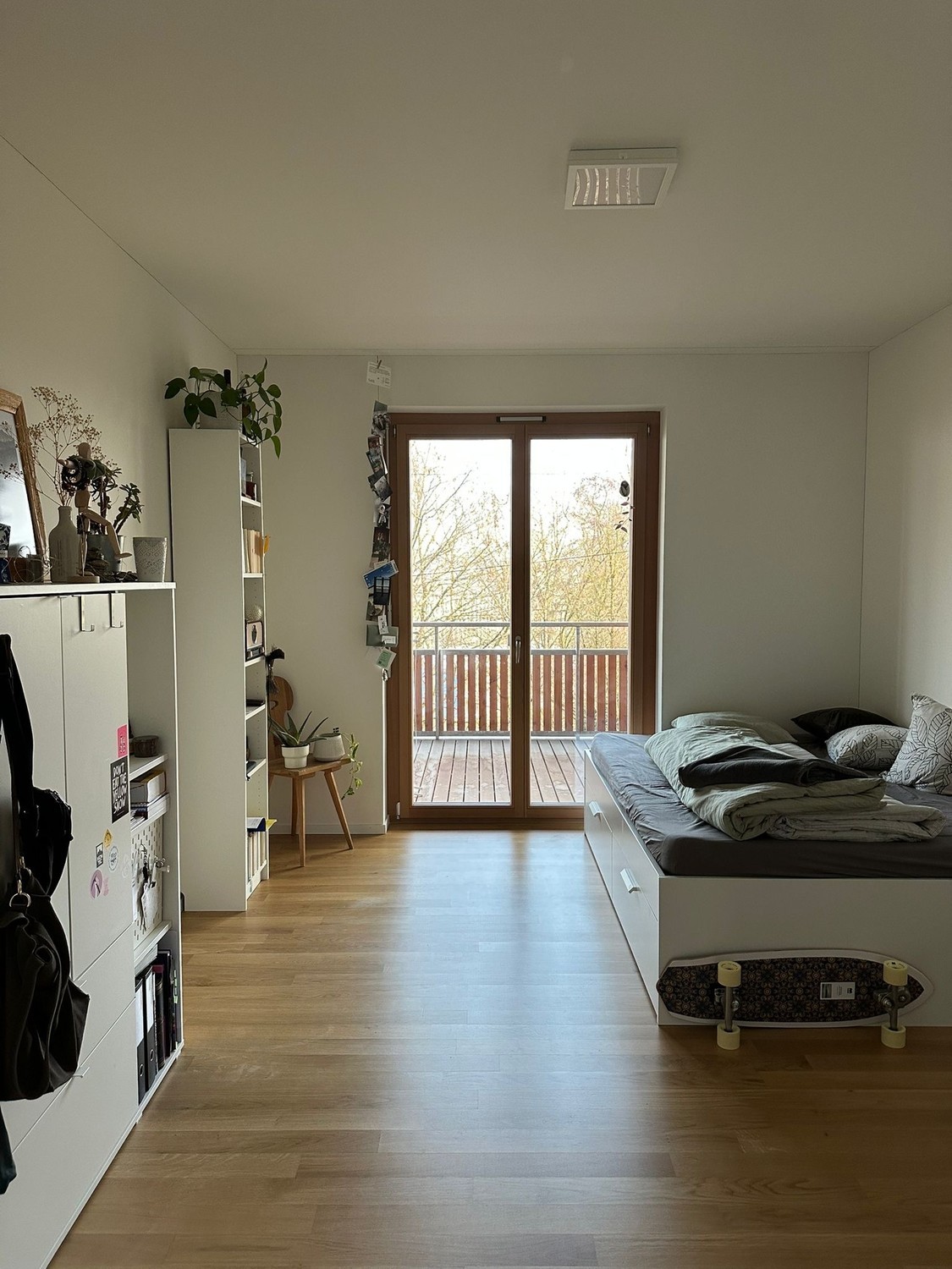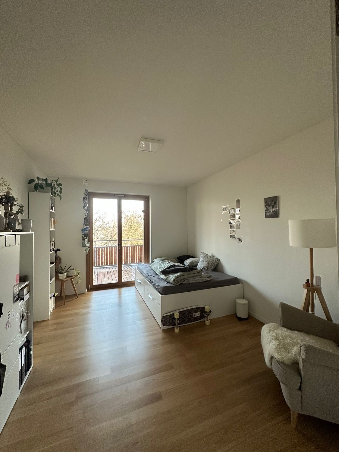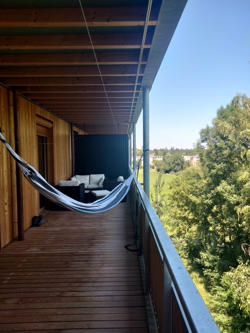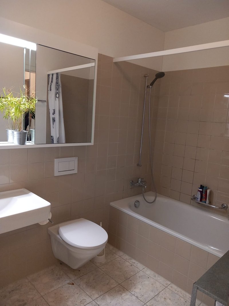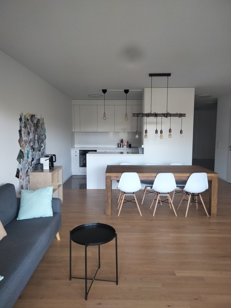 Das Zimmer hat direkten Zugang zur Terrasse, ist geräumige 18.5^2 gross in einer 5.5 Zimmer Wohnung (ca. 130m^2 mit zusätzlich 50 m^2 Terrasse) im 5ten Stock eines Neubaues (seit August 2020). Hat also neben allem modernen Schnickschnack und zwei grossen Terrassen auch ein Kellerabteil und natürlich ein Waschturm in der Wohnung. Option für einen Garagenplatz besteht ebenfalls. In der Miete ist sowohl Internet, als auch Nebenkosten enthalten (einzig der Strom wird separat abgerechnet).