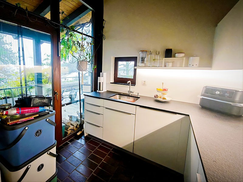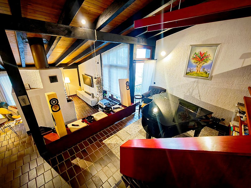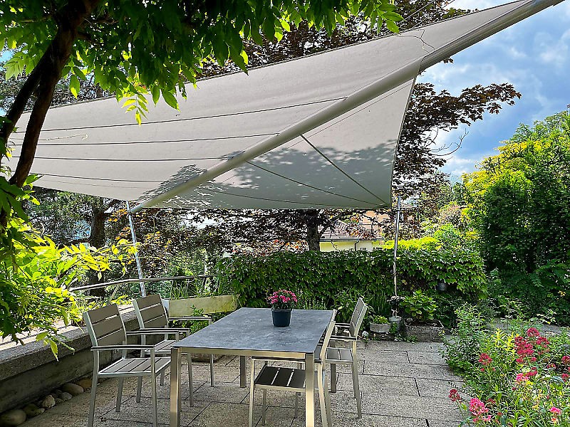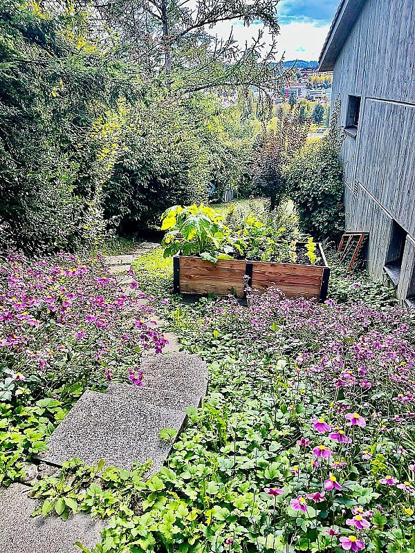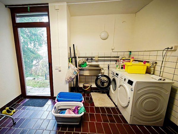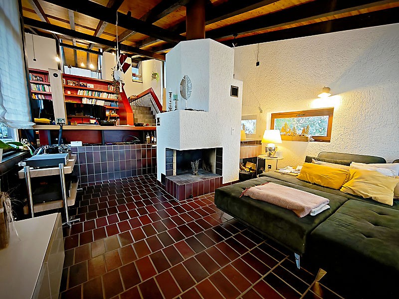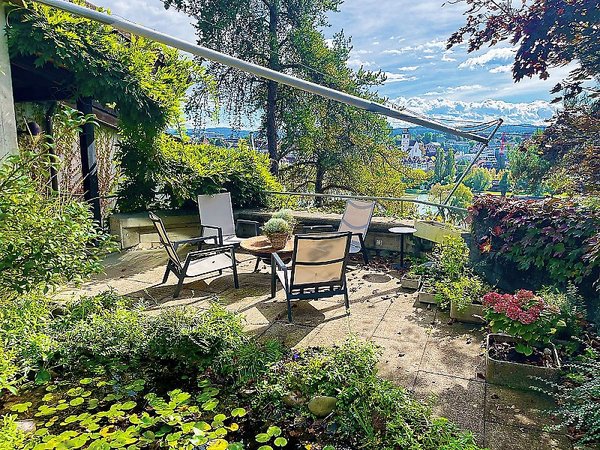 Wunderschönes Einfamilienhaus mit Charakter in leicht erhöhter Lage mit Blick auf die Altstadt von Aarau und auf die Aare. Das Haus ist in Hanglage und in offener Bauweise auf mehreren Etagen erstellt. Die Vorräume zu Schlaf- und Kinderzimmern, der Küchen- und Essbereich, eine Zwischenetage mit Bücherwand und der Wohnbereich mit Cheminée erstrecken sich offen über vier Etagen. Diese gelten als ein Raum. Weiter gibt es zwei Schlafzimmer, ein Bad, zwei weitere WC`s, zwei Vorrats- und Stauräume, eine Waschküche und ein Heizungsraum. In der Einliegerwohnung gibt es zwei weitere Zimmer, die als Arbeits- oder Therapieräume geeignet sind. Am Eingang gibt es eine Werkstatt für Aussengerätschaften. Zur Verfügung steht eine Doppelgarage und davor zwei Parkplätze. Über Aussentreppen oder über einen Schräglift gelangt man zum Haus. Der Aussenbereich beinhaltet einen Sitzplatz mit automatischem Sonnensegel, einen Teich, eine Spielwiese, viele Sträucher und Bäume, ein Hochbeet und einige Rebstöcke.