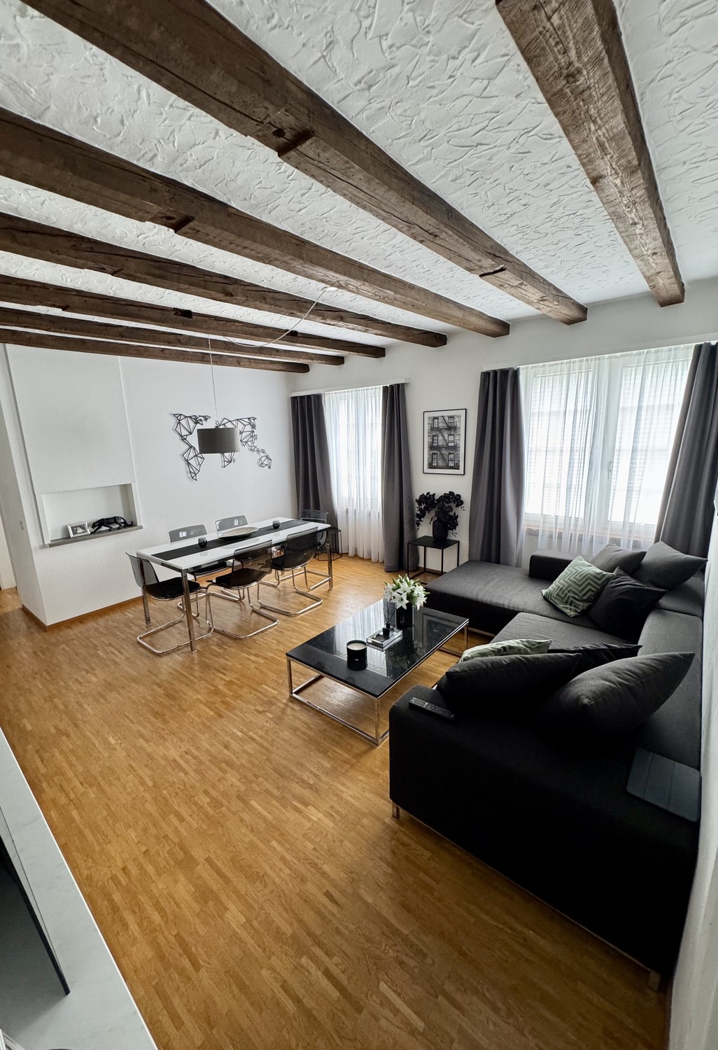 Die Wohnung ist eigenständig, befindet sich aber innerhalb eines grösseren Hauses – ideal für eine ruhige Person, die ein stilvolles und unkompliziertes Zuhause in angenehmer Umgebung sucht.