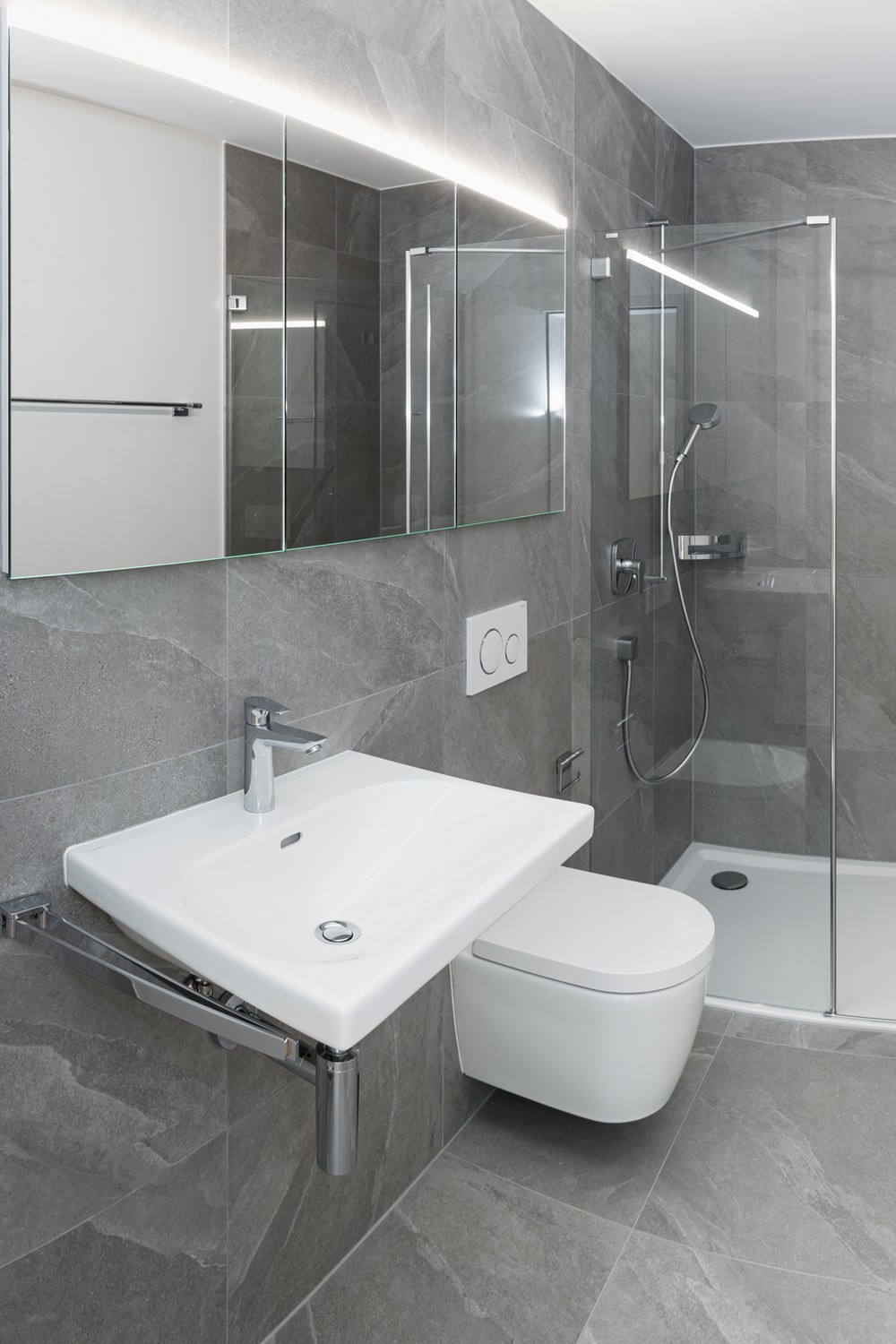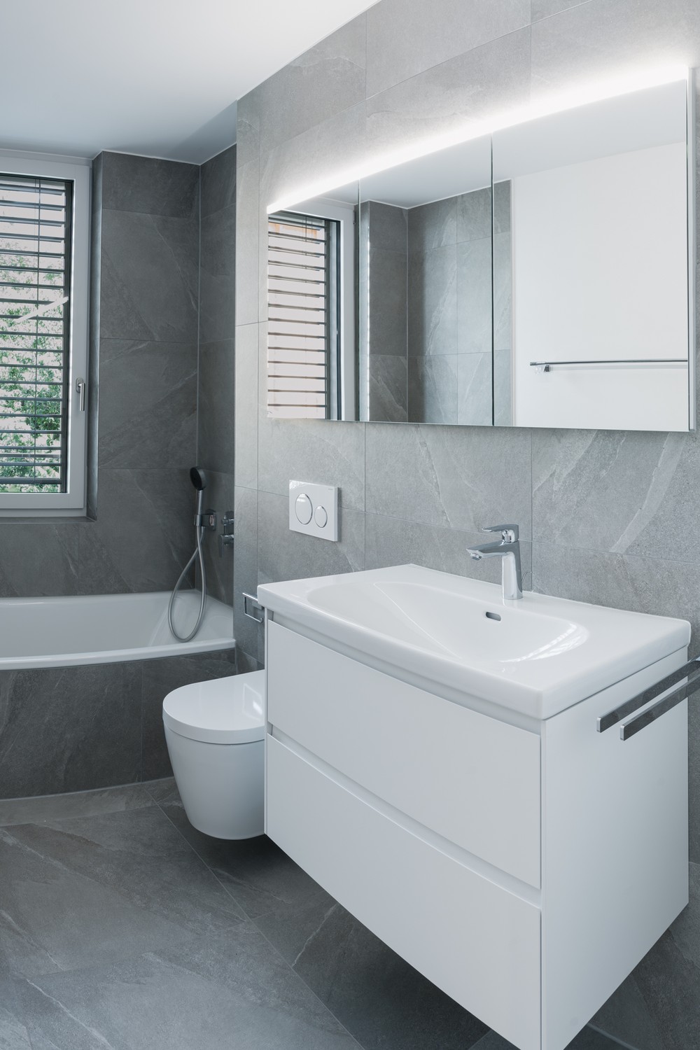 Grossflächige Einbau-Spiegelschränke in den Badezimmern