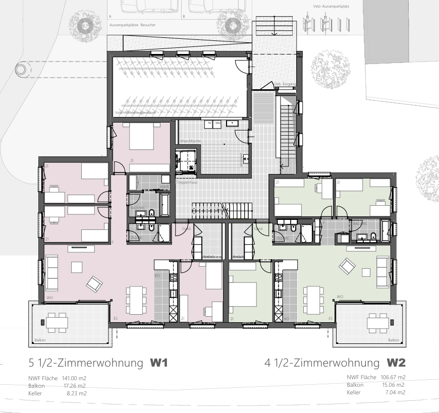 Überdurchschnittlich grosse Wohnungen, Balkone und Keller