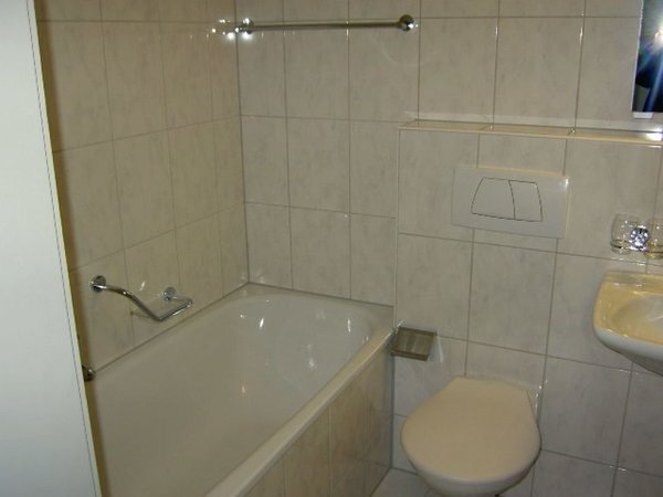 Bad/WC mit Badewanne und Plattenboden