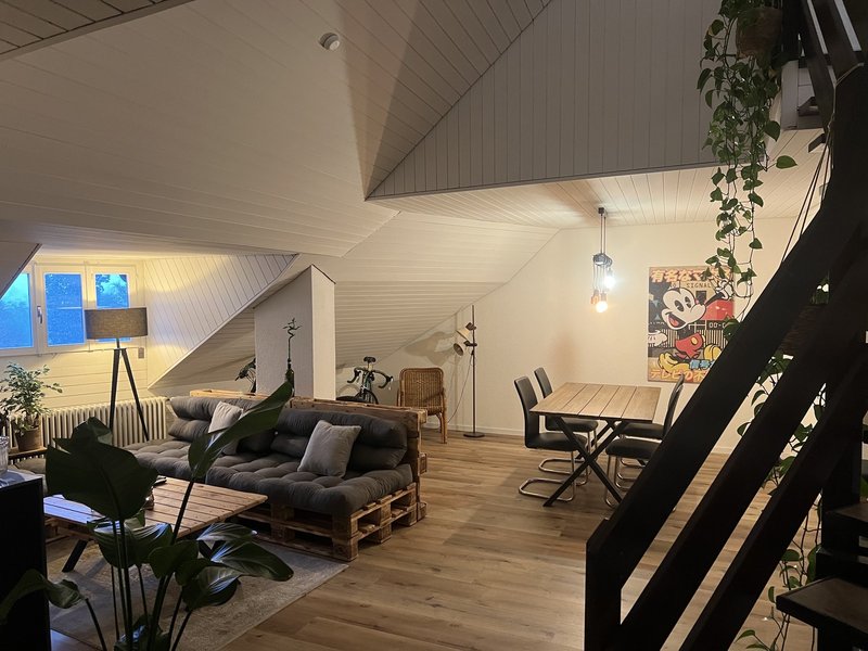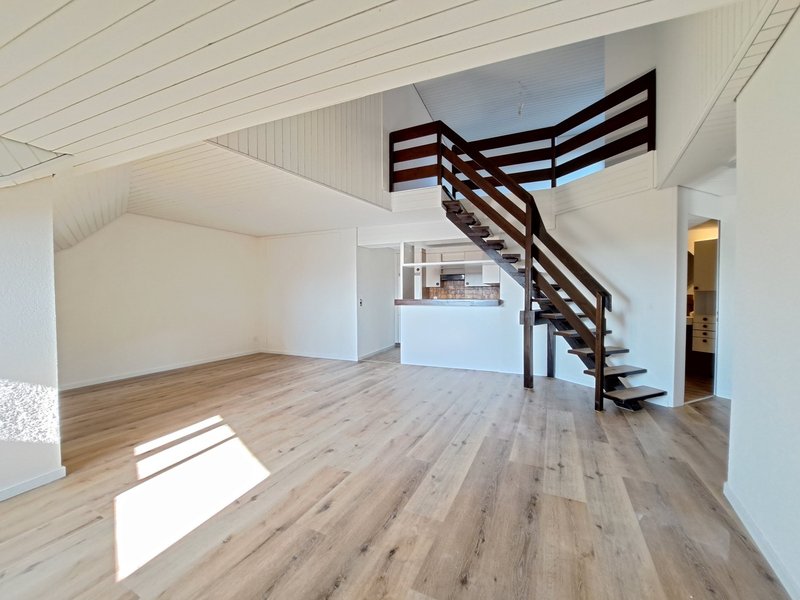 Die Kombination aus grosszügigem Wohnbereich, Dachcharakter und Galerie verleiht der Wohnung ein einzigartiges, luftiges Wohngefühl.