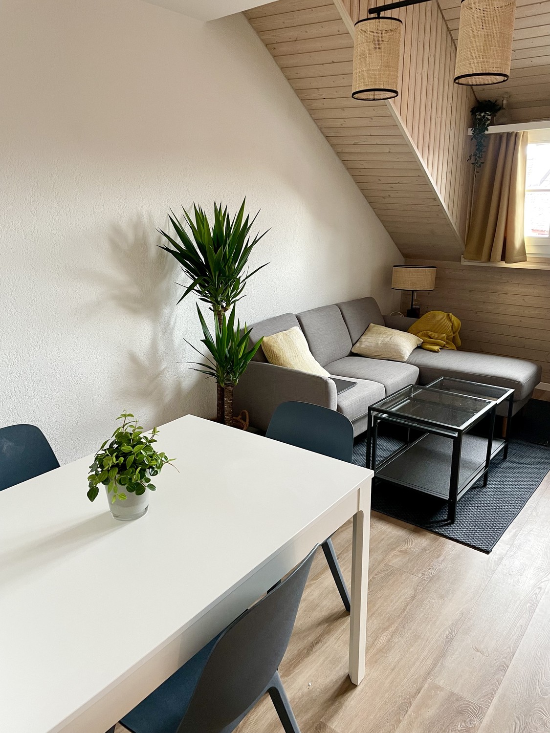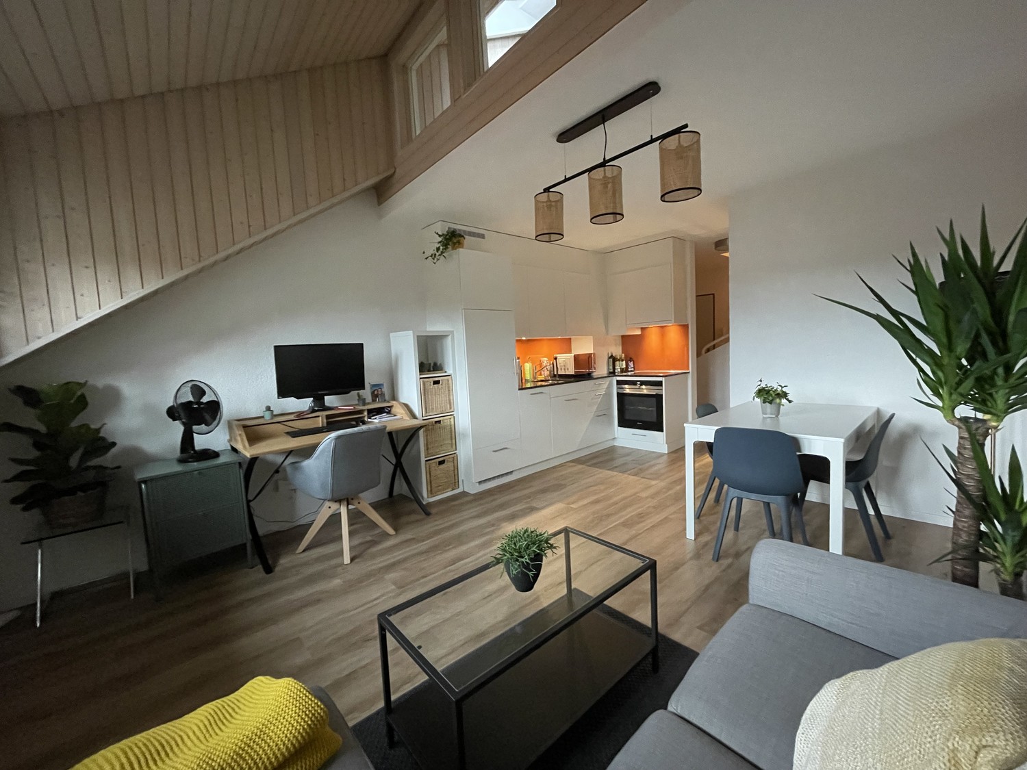 Cozy, quiet duplex apartment (58 sqm) in the heart of Baden Old Town. Open living/dining area with modern kitchen incl. dishwasher. Loft bedroom with extra attic storage; bathroom with bathtub. In-unit washer and dryer (tumbler). Wooden floors, practical layout. Unfurnished; selected furniture can be taken over by agreement. Available from 1st of December (01.12.2025).
