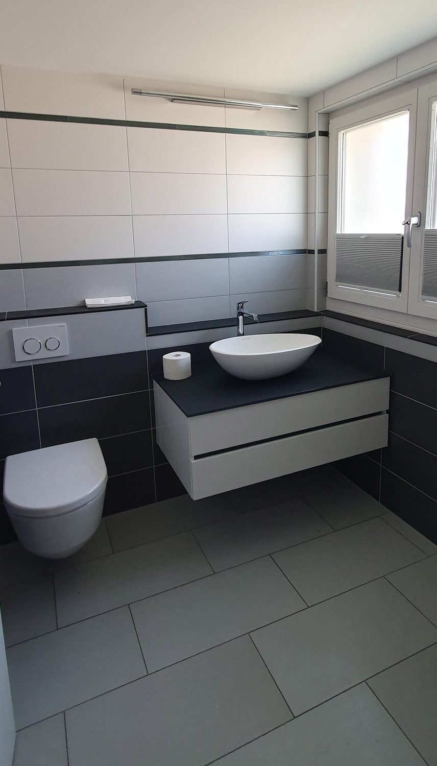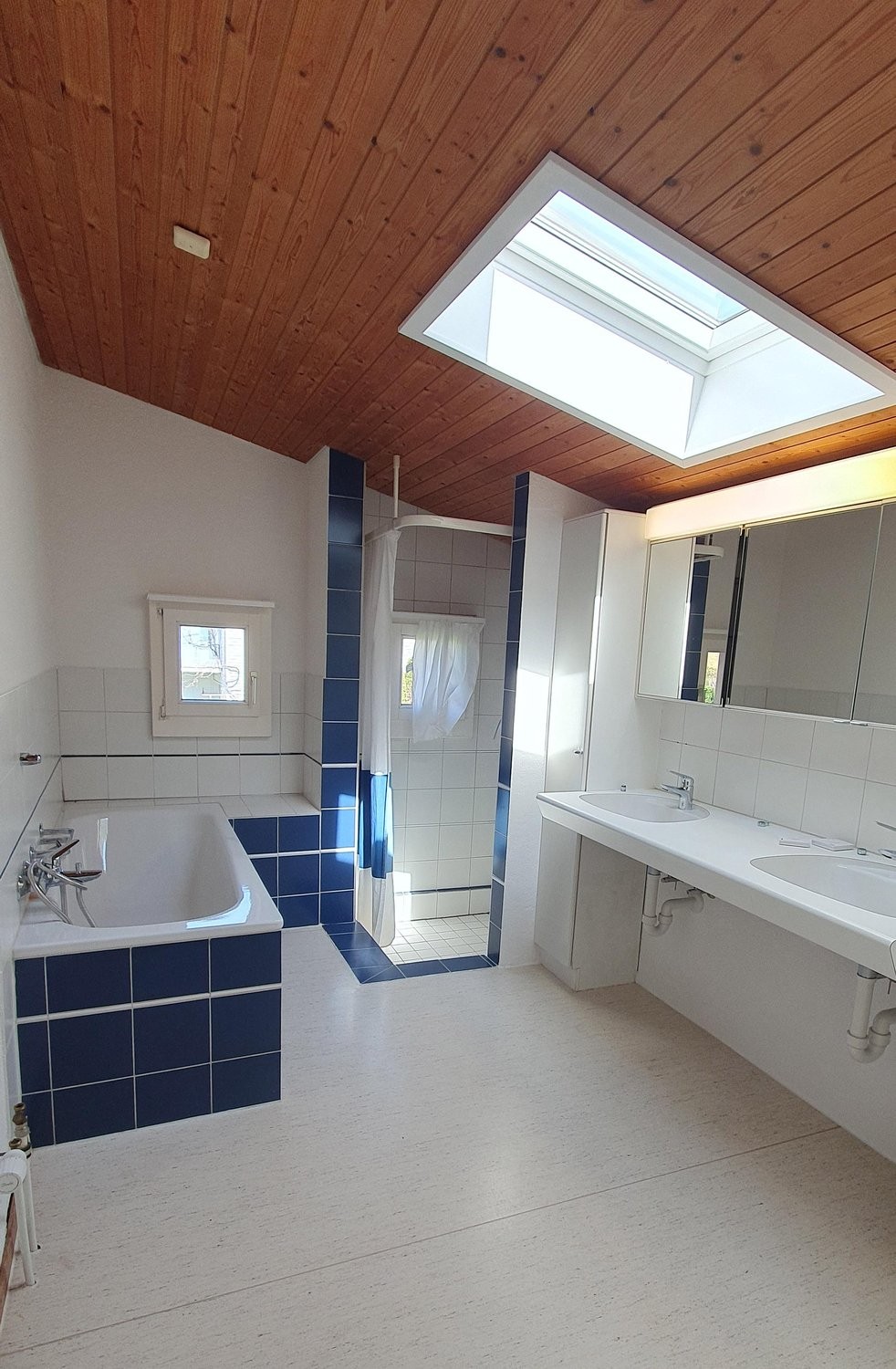 Badezimmer mit Badewanne, Dusche und Doppellavabo