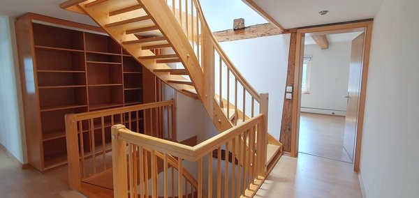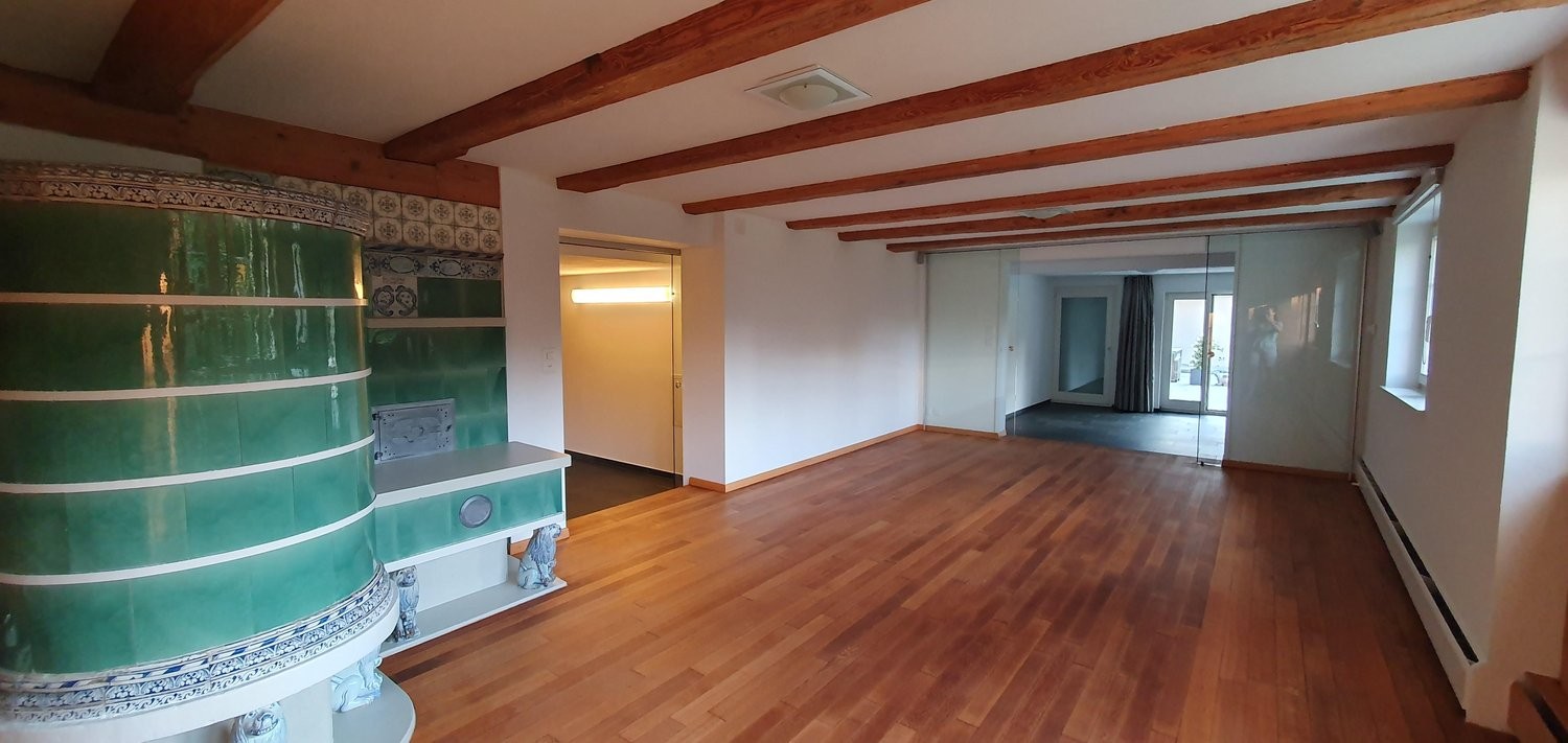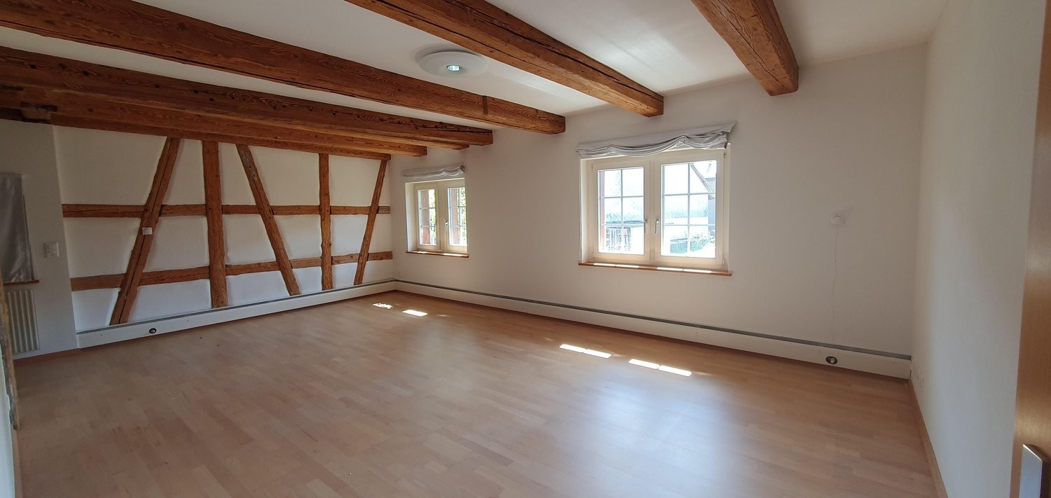 Dieser lichtdurchflutete 7.5-Zimmer-Hausteil erstreckt sich über drei Etagen und überzeugt mit viel Charme, sichtbaren Holzelementen und einem durchdachten Grundriss ideal für Paare, Familien oder Wohnen & Arbeiten unter einem Dach.