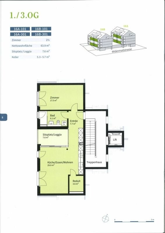 Bei Bedarf kann ebenfalls ein Auto-Einstellplatz in der angeschlossenen Tiefgarage für CHF 120.-/Monat gemietet werden.