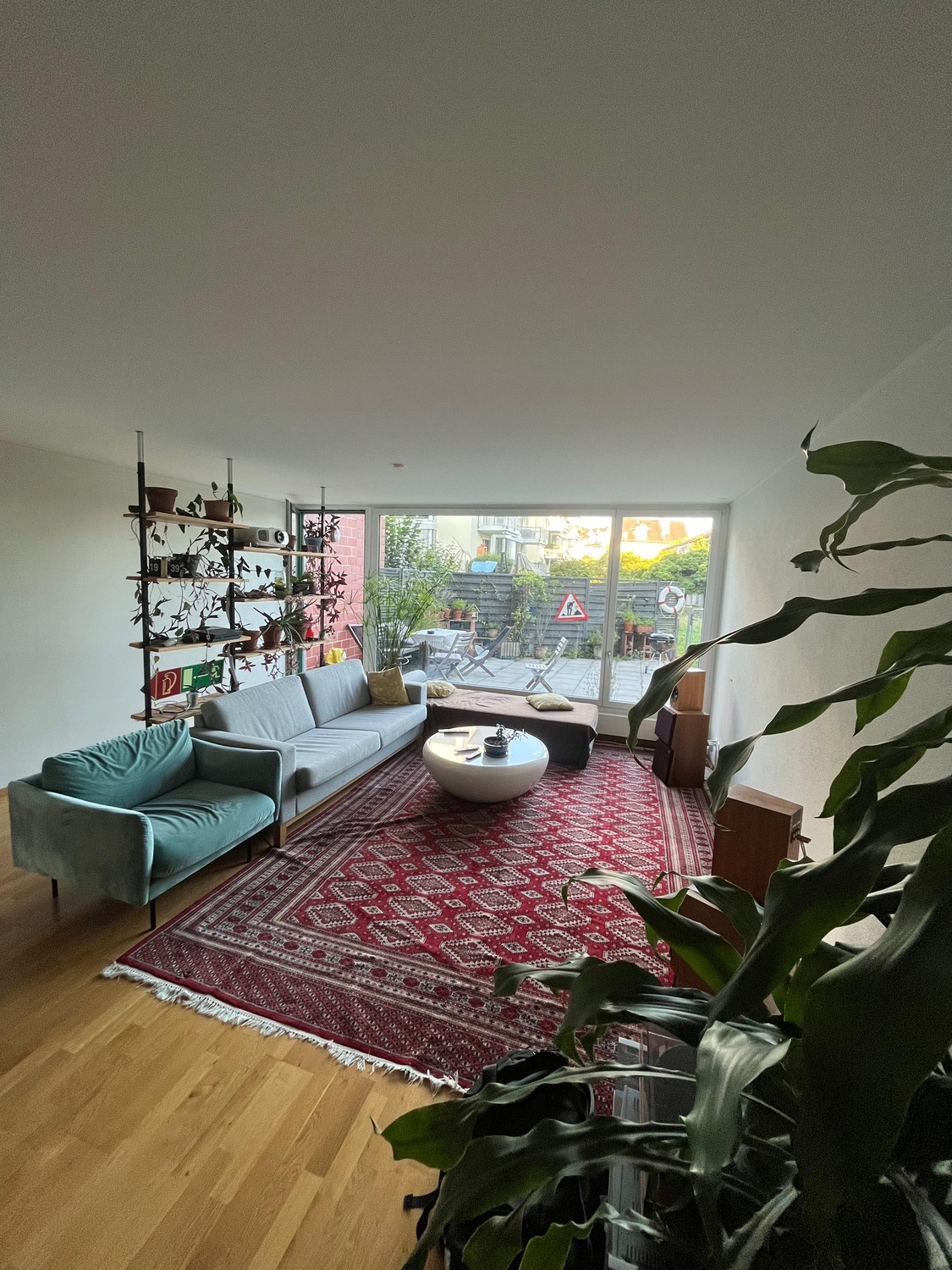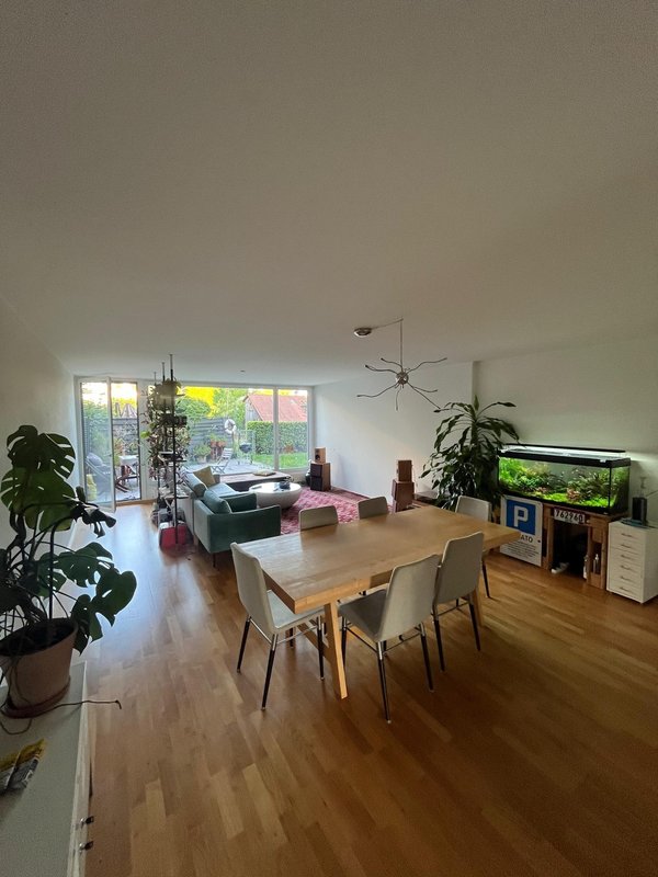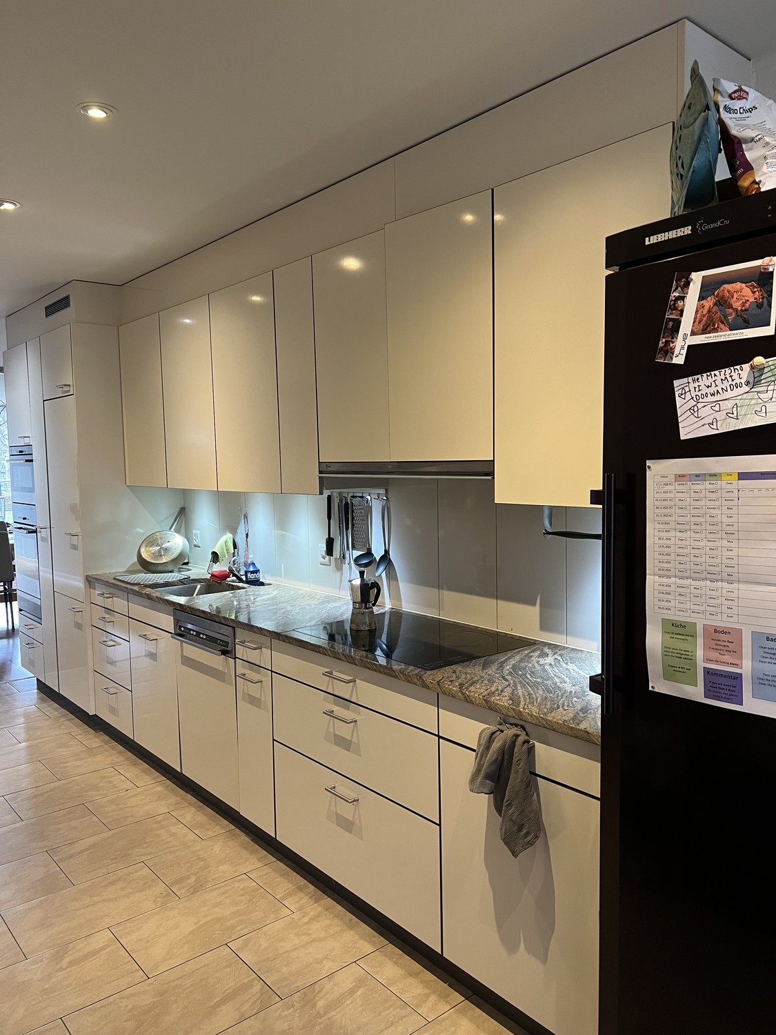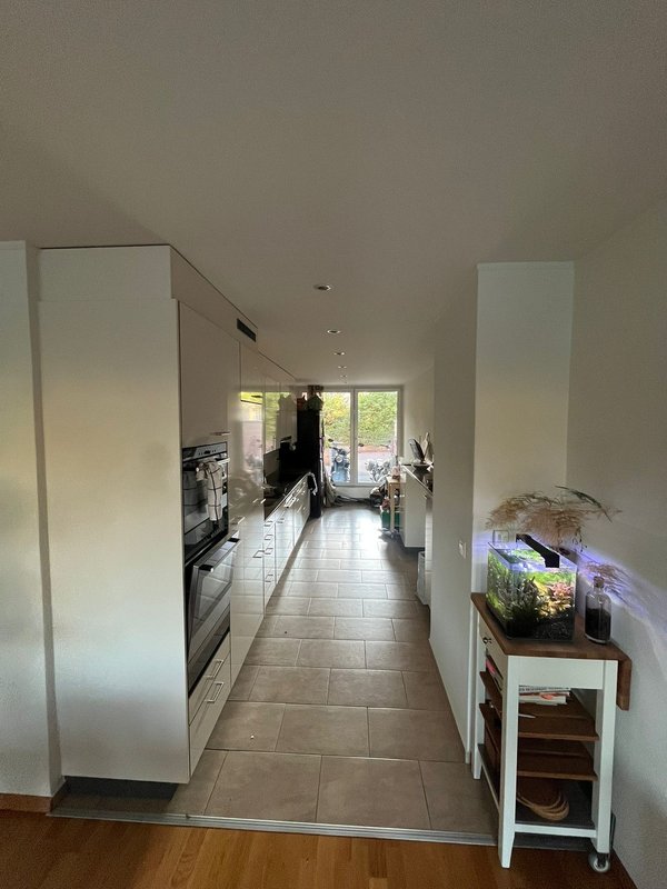 Die Wohnung ist ca. 145 m2 gross und verfügt über ein grosses Bad (inkl. Dusche und Badewanne), ein kleineres WC und eine Waschküche mit eigenem Waschturm. Die Küche ist mit Ofen, Steamer, Geschirrspüler, Kühlschrank und Weinkühlschrank ausgestattet. Im Garten haben wir einen Sitzplatz, Kohlegrill und ein Hochbeet zur gemeinsamen Nutzung aufgebaut.