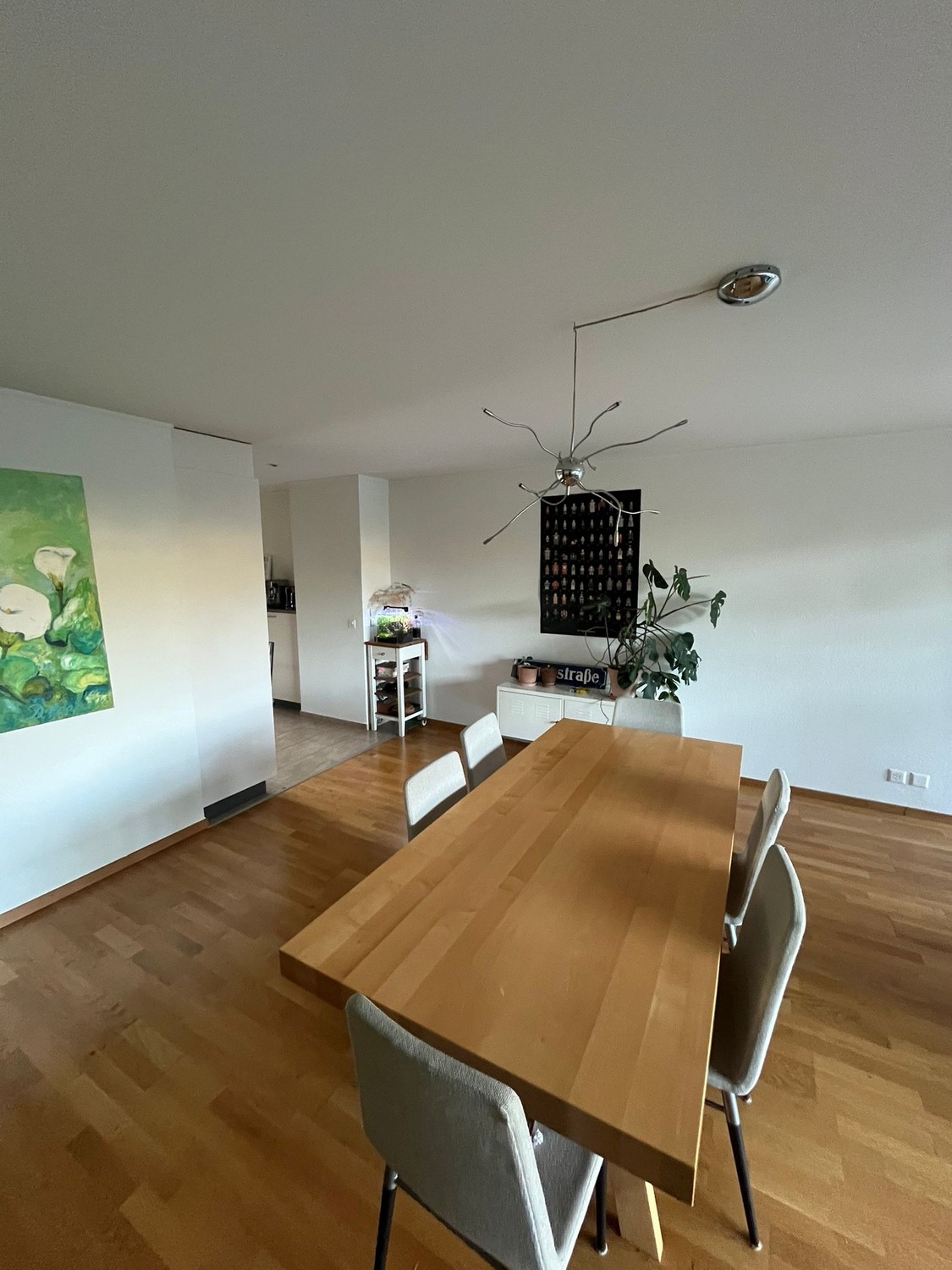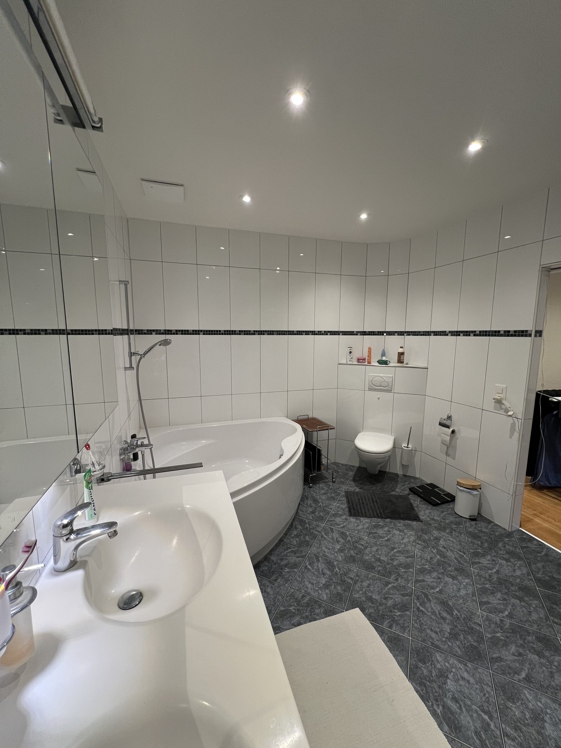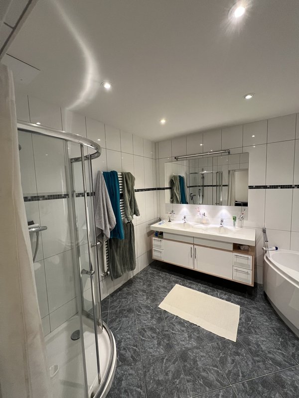 Die Wohnung ist ca. 145 m2 gross und verfügt über ein grosses Bad (inkl. Dusche und Badewanne), ein kleineres WC und eine Waschküche mit eigenem Waschturm. Die Küche ist mit Ofen, Steamer, Geschirrspüler, Kühlschrank und Weinkühlschrank ausgestattet. Im Garten haben wir einen Sitzplatz, Kohlegrill und ein Hochbeet zur gemeinsamen Nutzung aufgebaut.