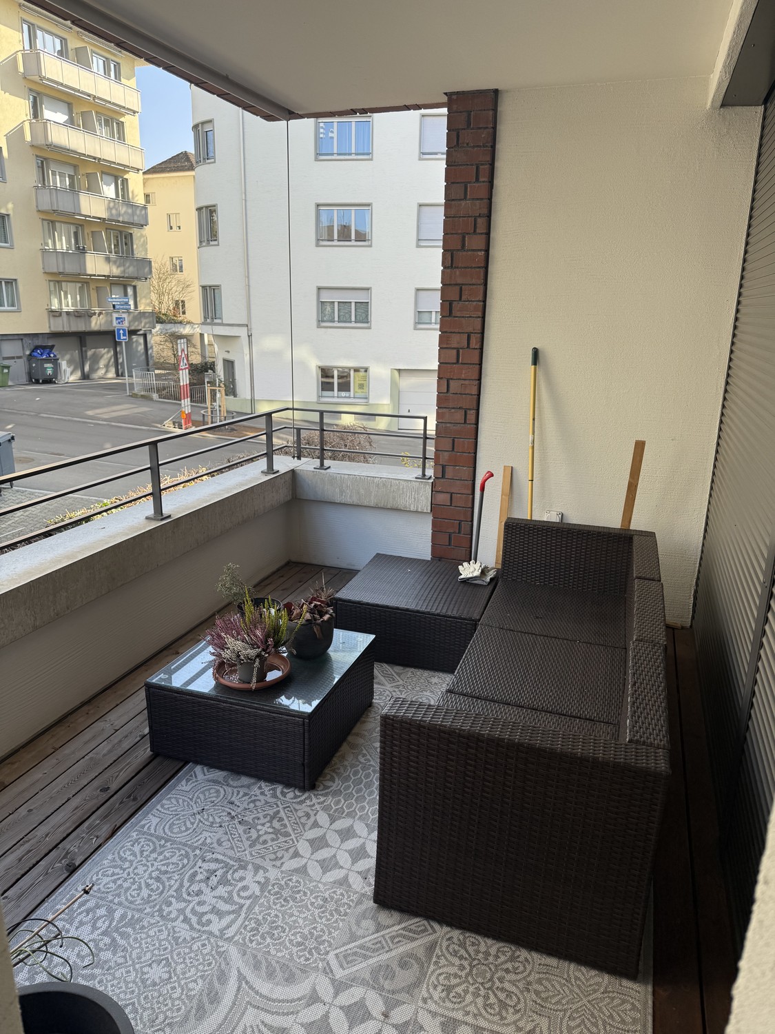 The location offers excellent convenience — Coop (3 min), Migros (8 min), and the China Garden and lake promenade (8 min) are all within walking distance. Public transport connections are ideal, with the Fröhlichstrasse tram stop only 2 minutes’ walk away and Tiefenbrunnen train station reachable in 9 minutes.