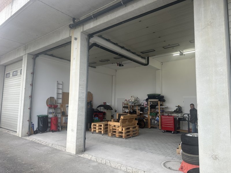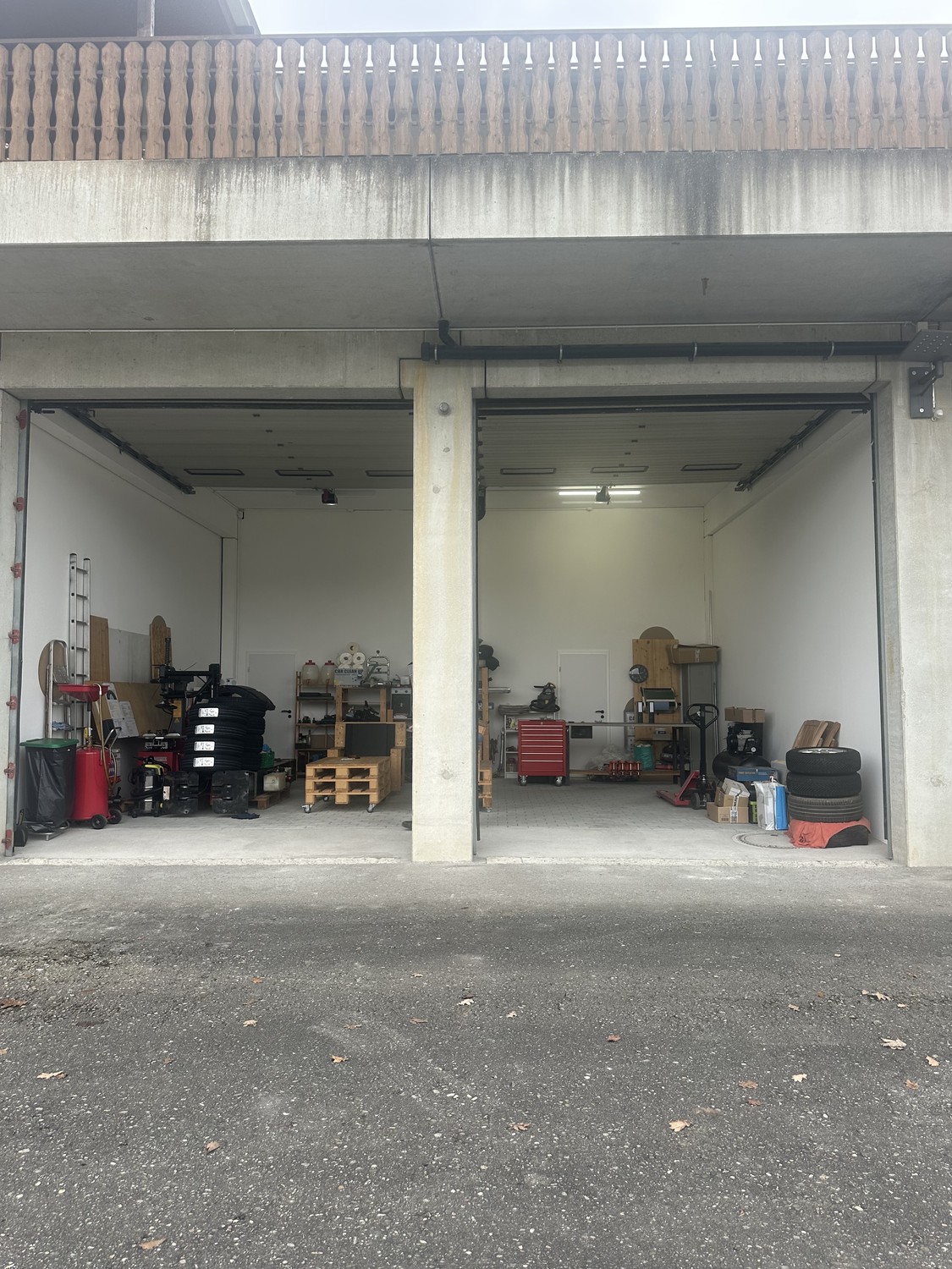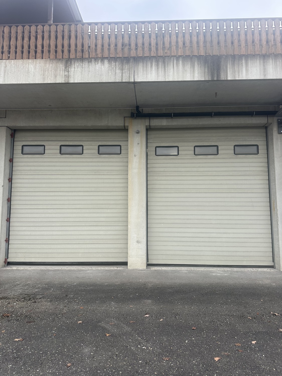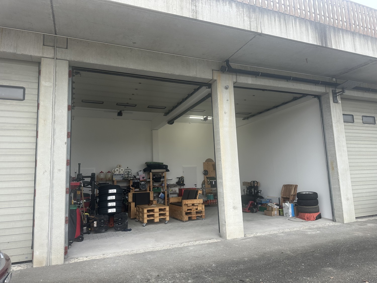 Trockener und Frostsicherer Lagerraum/Grossgarage mit einer Breite von 8m, Länge 7.20m und Raumhöhe von 4m. Isolierte elektrische Hörmann Tore und Stromanschluss vorhanden.