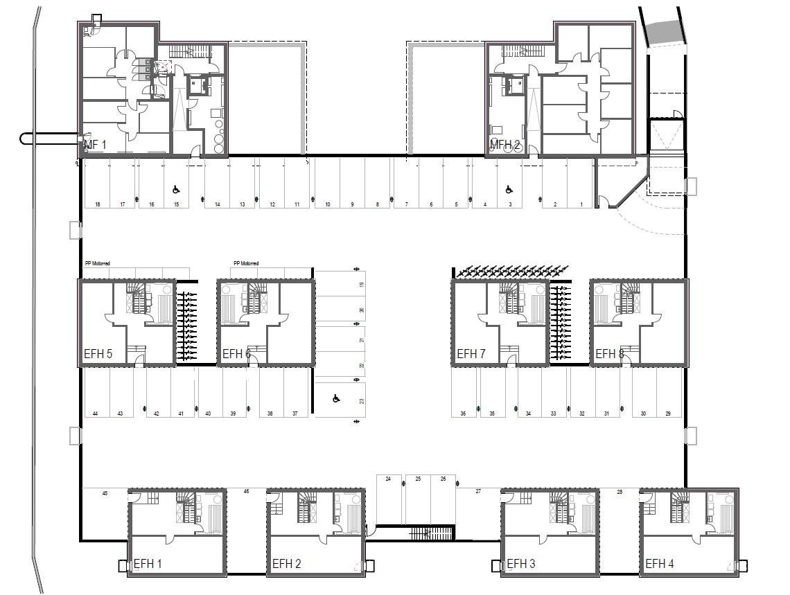 Die Tiefgarage bietet sichere, saubere Stellplätze mit guter Zugänglichkeit und komfortabler Einfahrt. Ideal für Auto- und Motorradbesitzer, die Wert auf Sicherheit und Schutz ihres Fahrzeugs legen.