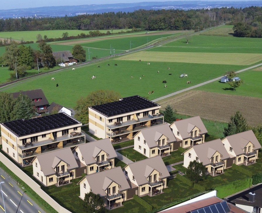 Die Gebäude werden mittels einer Wärmepumpenheizung und der nachhaltigen Wärmegewinnung durch Erdsonden beheizt. Die Wärmeverteilung erfolgt über eine Fussbodenheizung mit Raumthermostaten zur individuellen Regulierung. Durch die grosszügige Photovoltaik-Anlage auf dem Dach reduzieren sich die Kosten für Allgemein- und Wohnungsstrom (ZEV).