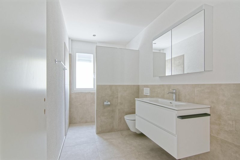 Die offene Eckküche mit hellen Kunstharzfronten, einer dunklen Arbeitsfläche aus Naturstein und einer hellen Glasrückwand ist ein Highlight der Wohnung. Sie zeichnet sich durch die hochwertigen Einbaugeräte (Induktionskochfeld, Umluft-Dampfabzug mit Aktivkohlefilter, hochliegender Backofen, Kühlschrank mit Tiefkühlfach, Geschirrspüler, Marke Electrolux/Bora) und genügend Stauraum sowie Arbeitsflächen aus, welche den Küchenalltag spürbar vereinfachen. Im gesamten Wohn-/Schlafbereich ist ein Vinylboden in Eichenoptik verlegt. Die Wohnungen verfügen über ein Badezimmer mit Tageslicht, beigem Plattenboden und Wandplatten und sind ausgestattet mit einer bodenebenen Dusche mit gemauerter Trennwand, WC, Lavabo mit Unterbau (weiss matt) und Spiegelschrank. Waschmaschine und Tumbler befinden sich ebenfalls im Badezimmer. Im Eingangsbereich bietet eine Garderobe mit Einbauschrank viele Verstauungsmöglichkeiten. Jede der 3.5-Zimmer-Wohnungen bietet zudem ein Reduit. Die grosszügige, geschützte Terrasse mit 22 m2 Fläche lädt zum Geniessen und Verweilen ein. Ein Aussenreduit bietet zusätzlichen Stauraum. Sämtliche Lamellenstoren bei den Fenstern sind elektrisch angetrieben, die Sonnenstore manuell. Ein Kellerabteil gehört zu jeder Wohnung.