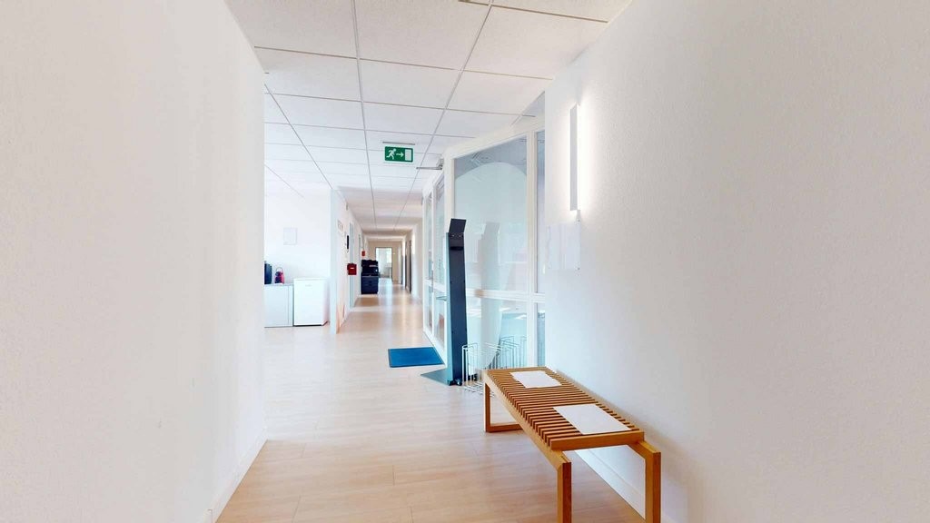 Ein Rundgang durch die Büroräumlichkeiten Die Fläche verfügt über grosse Fensterfronten die für Tageslicht sorgen.