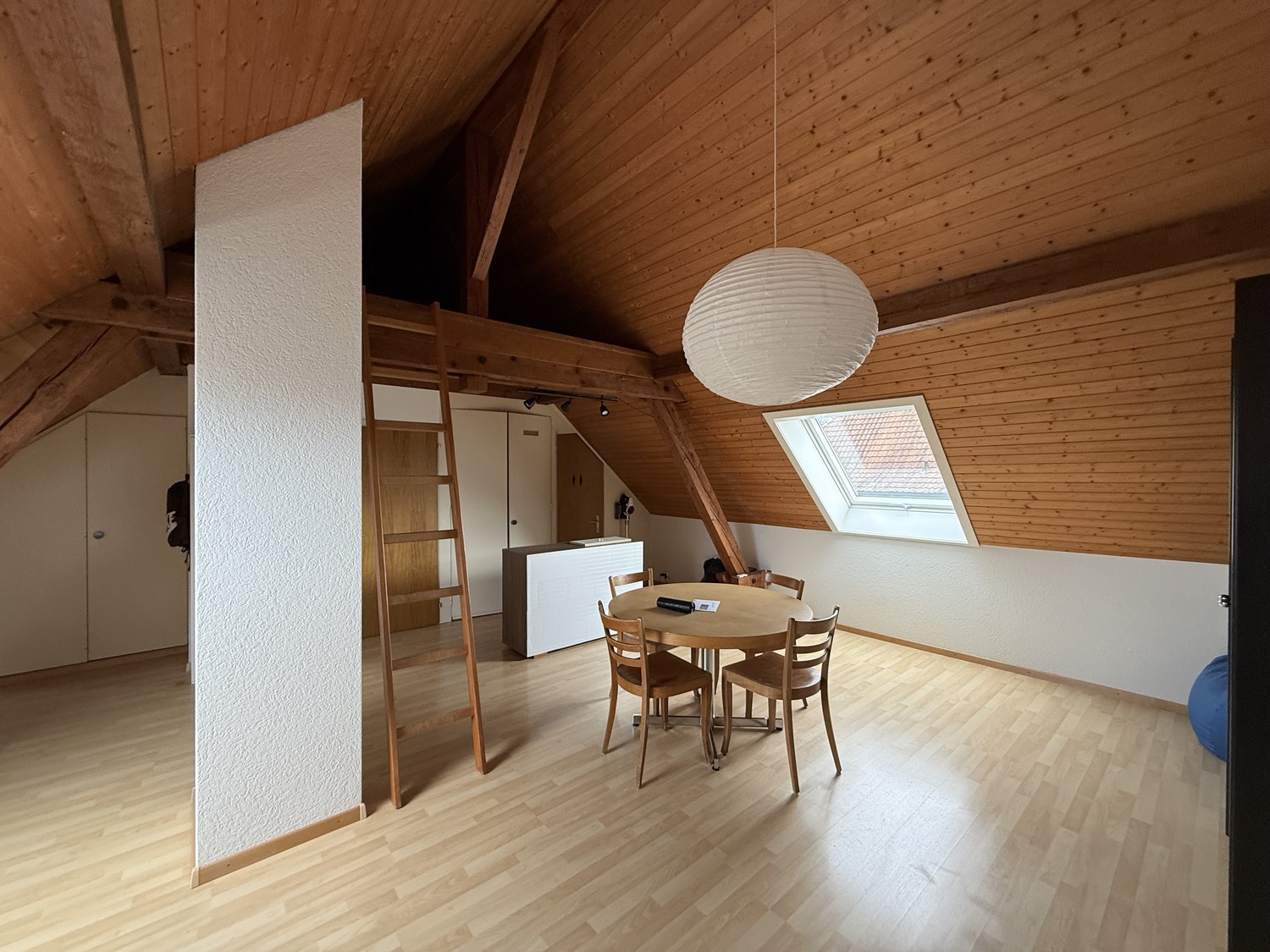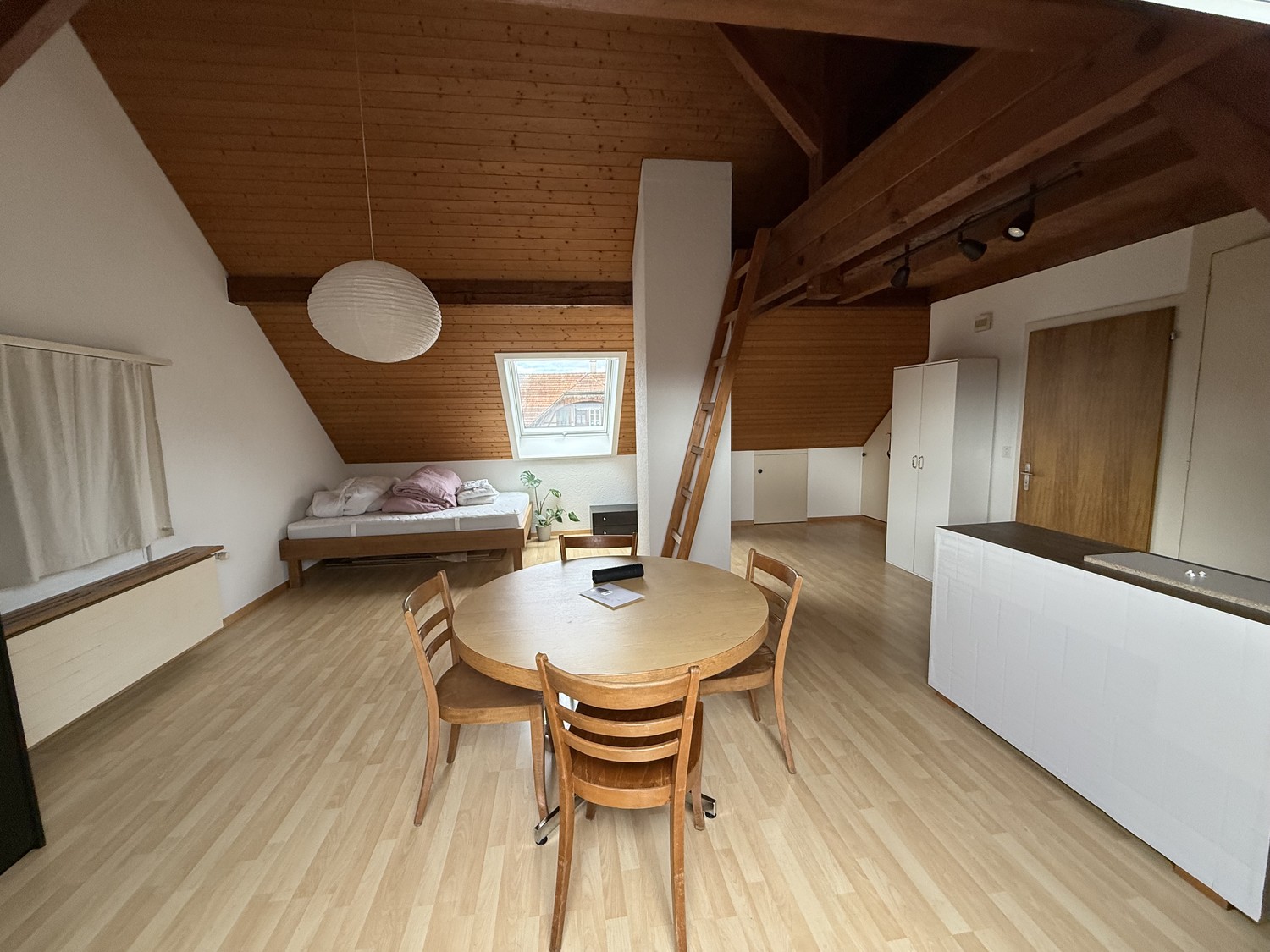 Zu vermieten auf den 1. April 2026 oder nach Vereinbarung, ein grosses möbliertes 1-Zimmer-Studio mit Galerie an der Wydenstrasse 5 im Dachgeschoss im Zentrum von Worb. Haustiere sind nicht erlaubt.