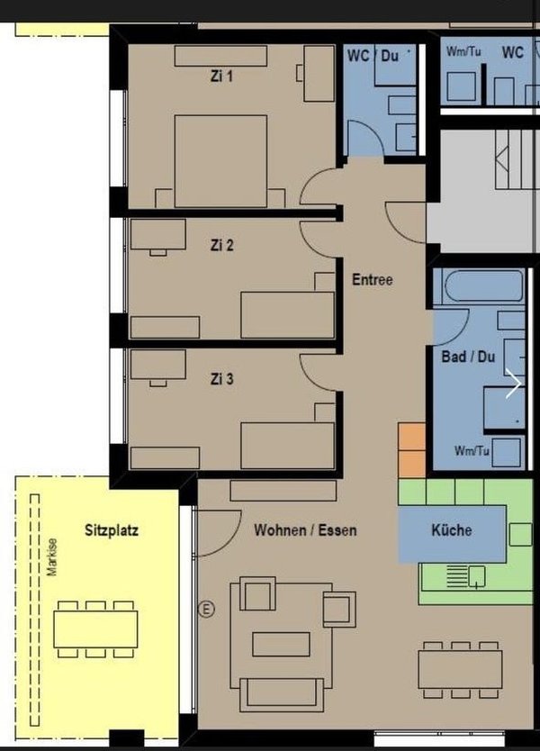 Ein Einstellplatz in der Tiefgarage kann für CHF 140.– pro Monat dazugemietet werden.