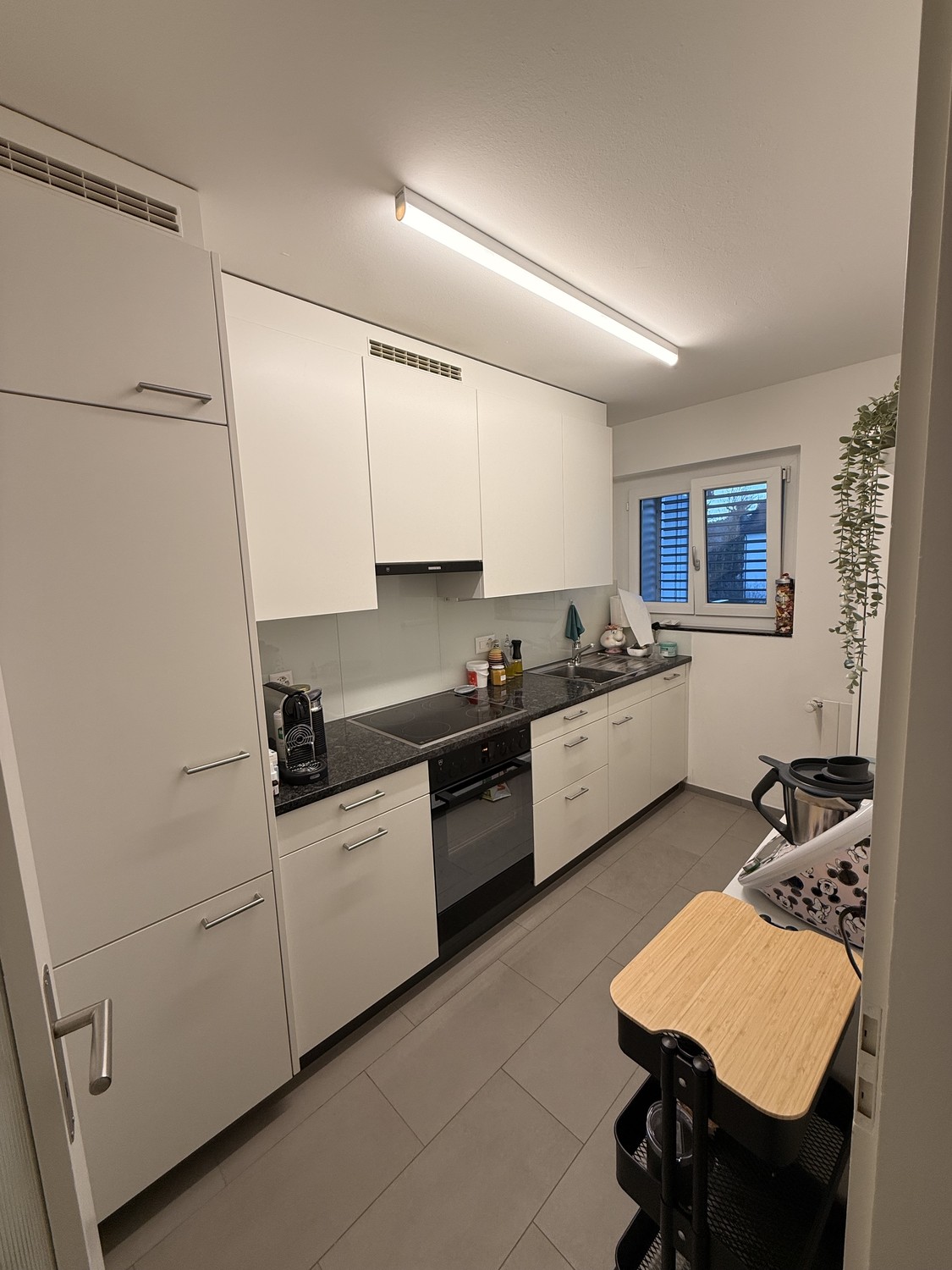 Ein Garagenparkplatz ist optional verfügbar (geeignet für Fahrzeuge in der Größe eines Fiat 500 bis VW Polo) und befindet sich auf der anderen Strassenseite. Preis Garagenparkplatz: CHF 145.95 / Monat.