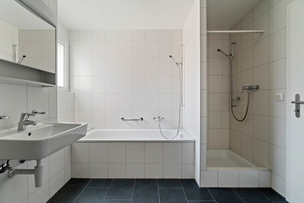 • Plattenboden in der Küche, Badezimmer und Dusche