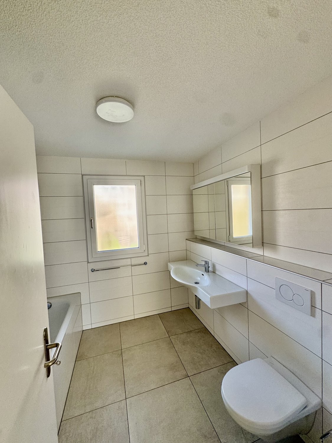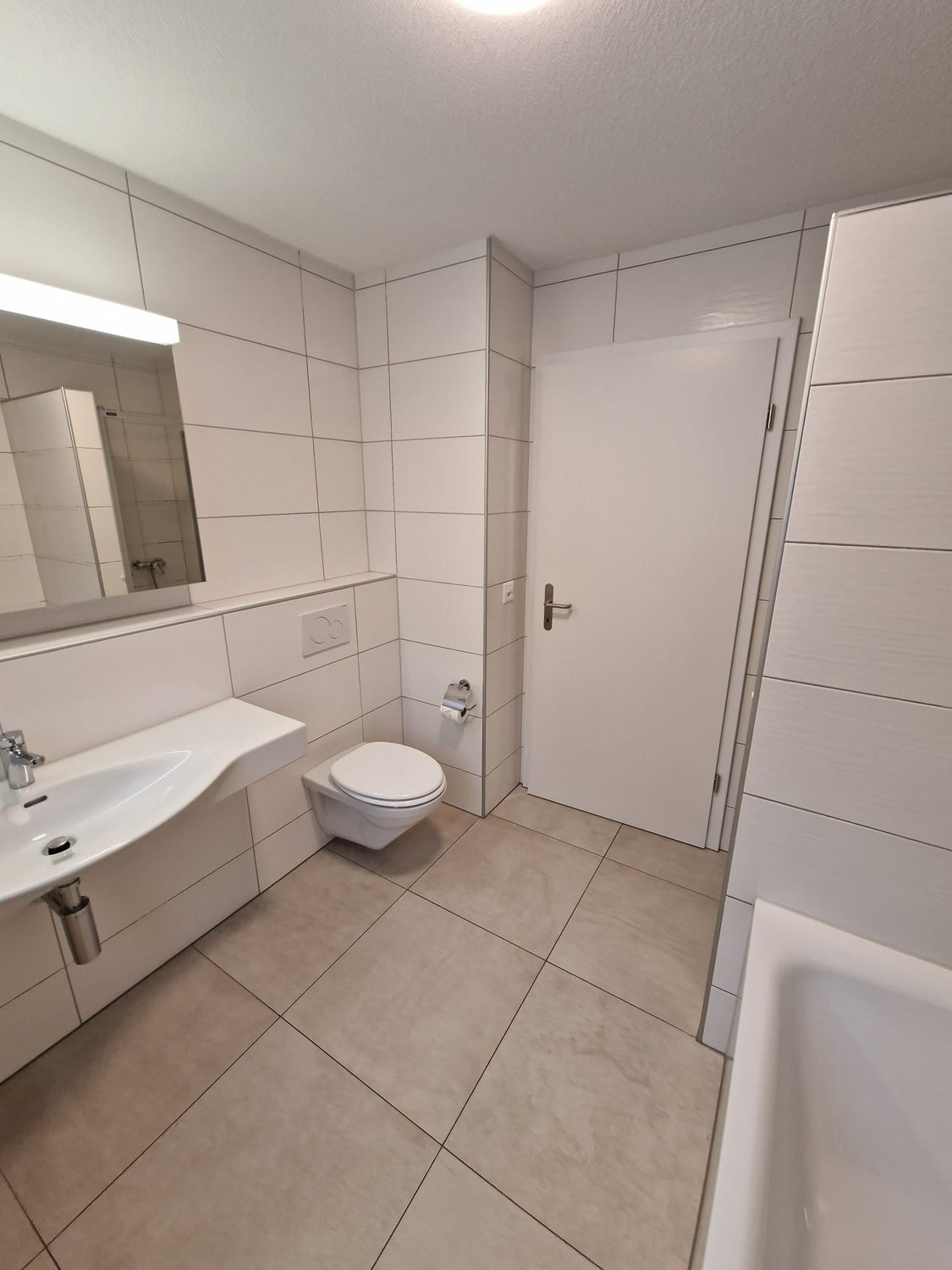 - Das Bad verfügt über eine Badewanne, WC, Spiegelschrank und pflegeleichten Plattenboden