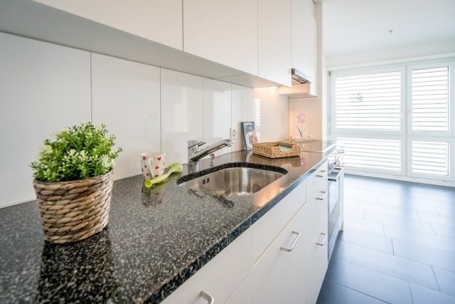 - Küche mit Granitabdeckung, Geschirrspüler und Glaskeramikherd