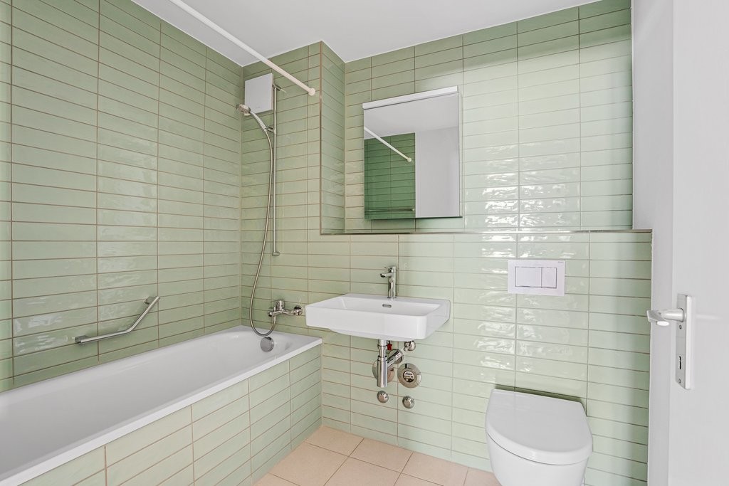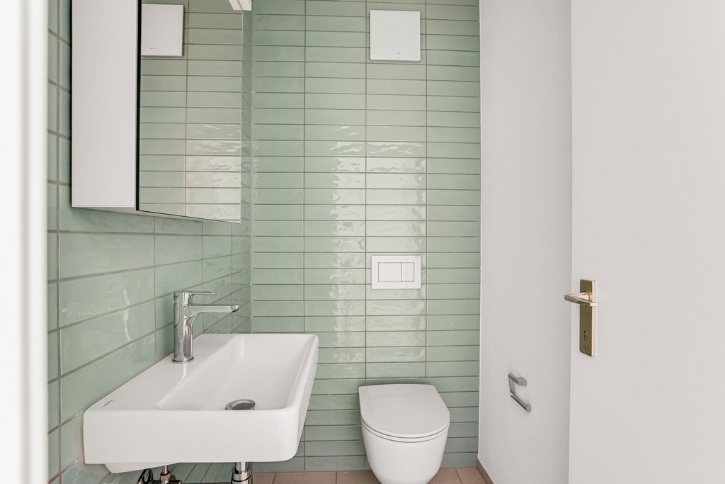 - Separates Bad mit WC, Lavabo und Spiegelschrank