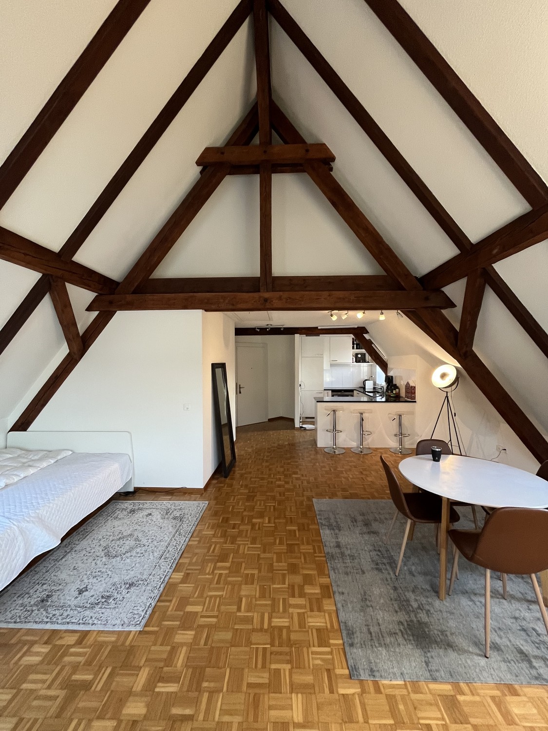 Charmante, vollständig möblierte Dachwohnung in zentraler und zugleich ruhiger Lage im begehrten Zürcher Seefeld (Kreis 8). Alle Nebenkosten (Heizung, Wasser, Strom) sind im Mietpreis inbegriffen.