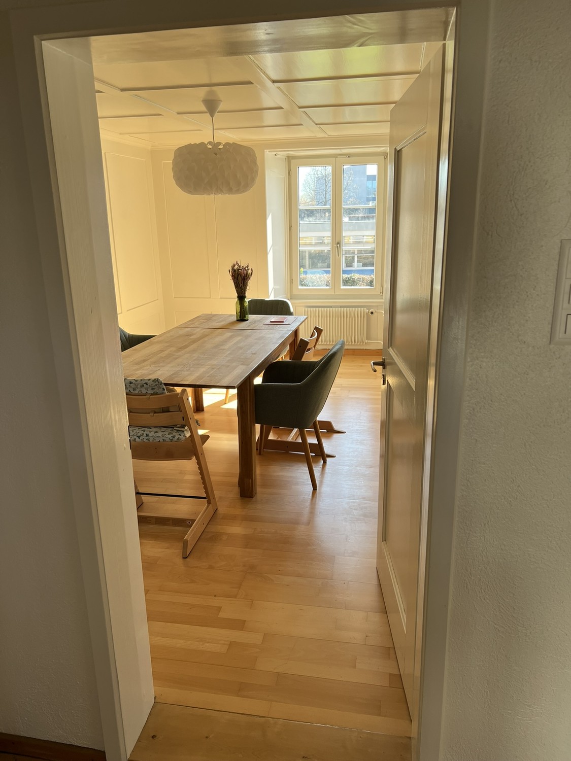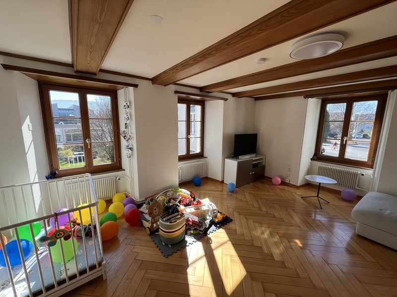 Nachmieter für 7-Zimmer Altbau Haushälfte im Zentrum von Baar per 01.04.2026 gesucht. Die Küche wurde im September 2025 komplett erneuert. Sehr zentral gelegen (3min Bahnhof Baar zu Fuss). Dazu gehören zwei Gärten vor und neben dem Haus.