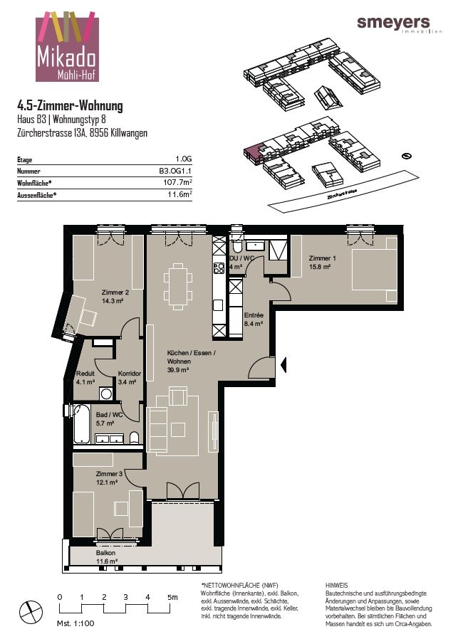 Per 01.06.2025 vermieten wir eine stilvolle und moderne 4.5-Zimmer-Wohnung in unserem Neubau Mikado Mühli in Killwangen.
