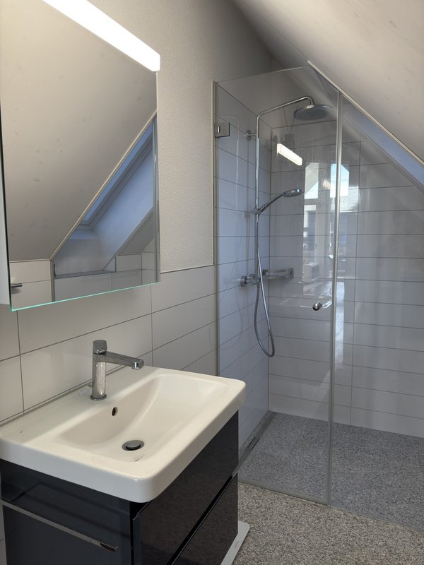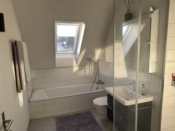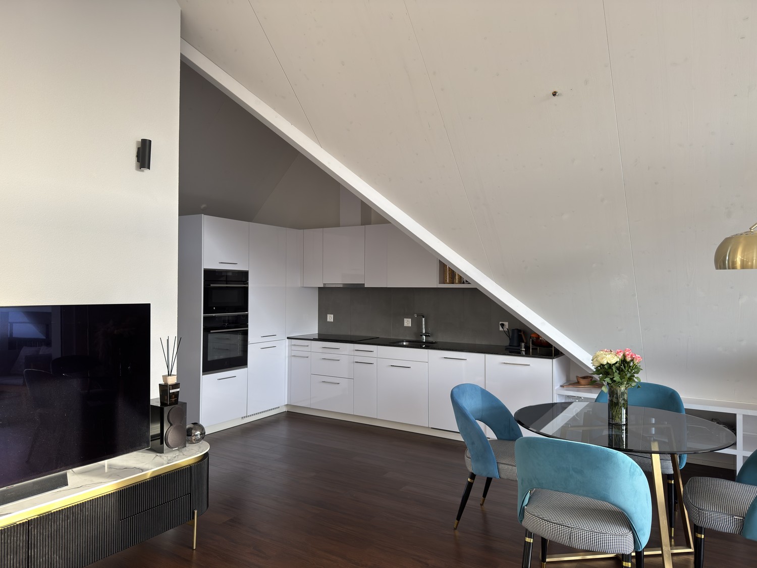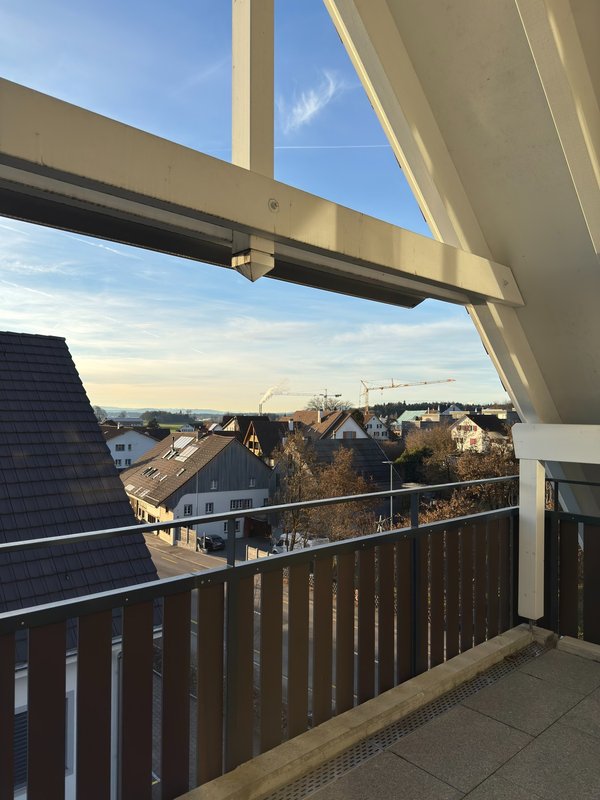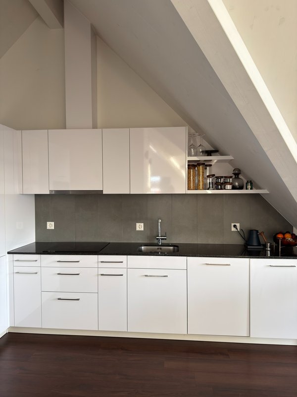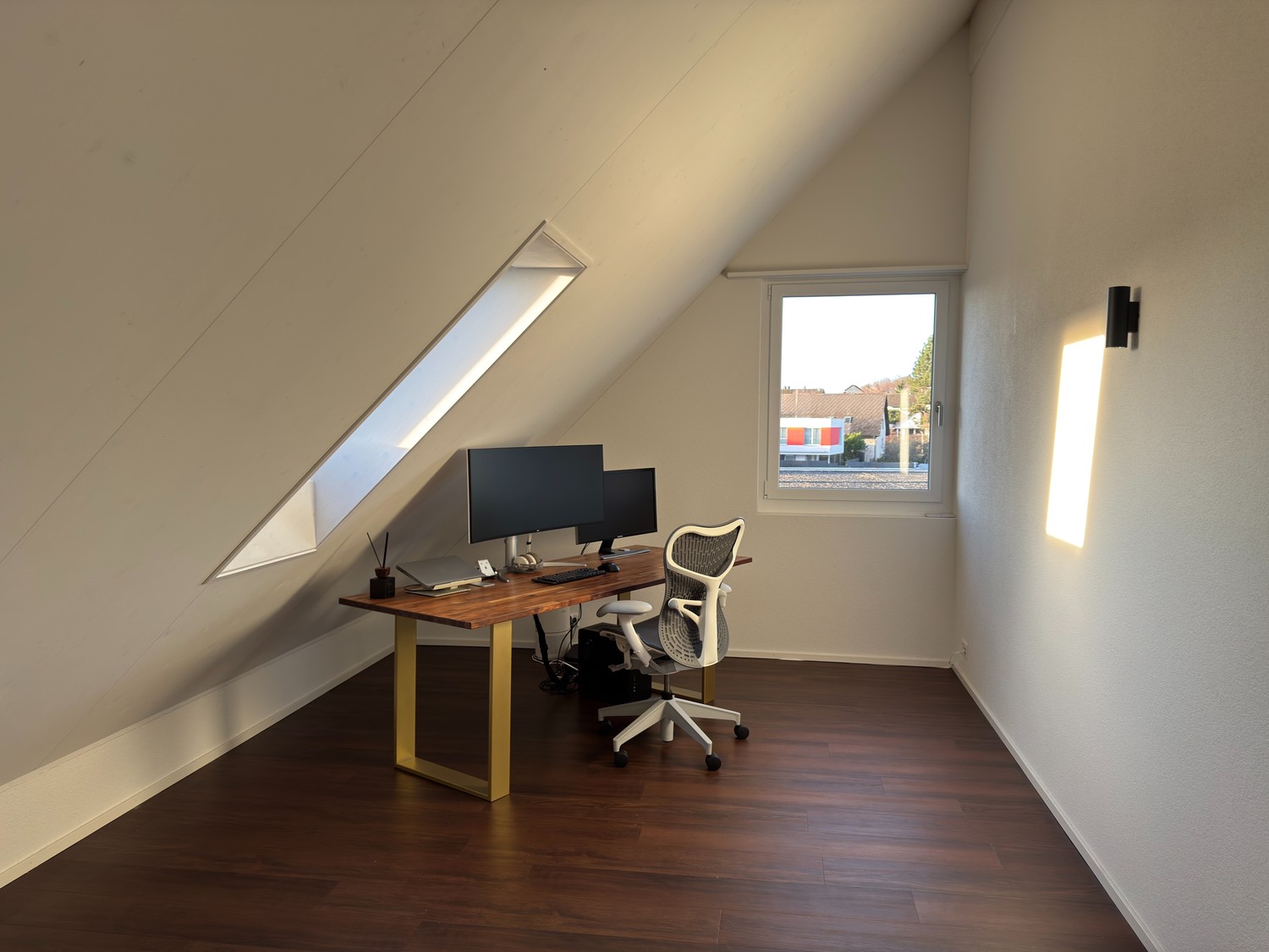 Diese grosszügige Dachwohnung in Tagelswangen bietet ein exklusives Wohnerlebnis, das bereits beim Betreten beginnt. Der Lift fährt per Haustürschlüssel direkt in Ihre Wohnung. Die maximale Deckenhöhe von 3.8m verbindet die Gemütlichkeit der Dachschrägen mit dem luftigen Raumgefühl eines Lofts. Für eine sensationelle Helligkeit sorgen die vollständig verglaste Wand im Wohnbereich und zahlreiche Dachschrägenfenster. Alle Fenster sind elektrisch bedienbar, inklusive motorisierter Öffnungsfunktion und Sonnenschutz für die Dachfenster sowie elektrischer Storen an den geraden Fenstern. Das Hauptschlafzimmer verfügt über ein direkt angebundenes Bad und wird durch ein separates Gäste-DU/WC ergänzt. Praktische Details wie der eigene Waschturm (WM/TU), diskret im Reduit verborgen, und ein grosses Entrée mit funktionaler Podest-Nische (ideal für Home-Office oder Leseecke) runden das Raumangebot ab.