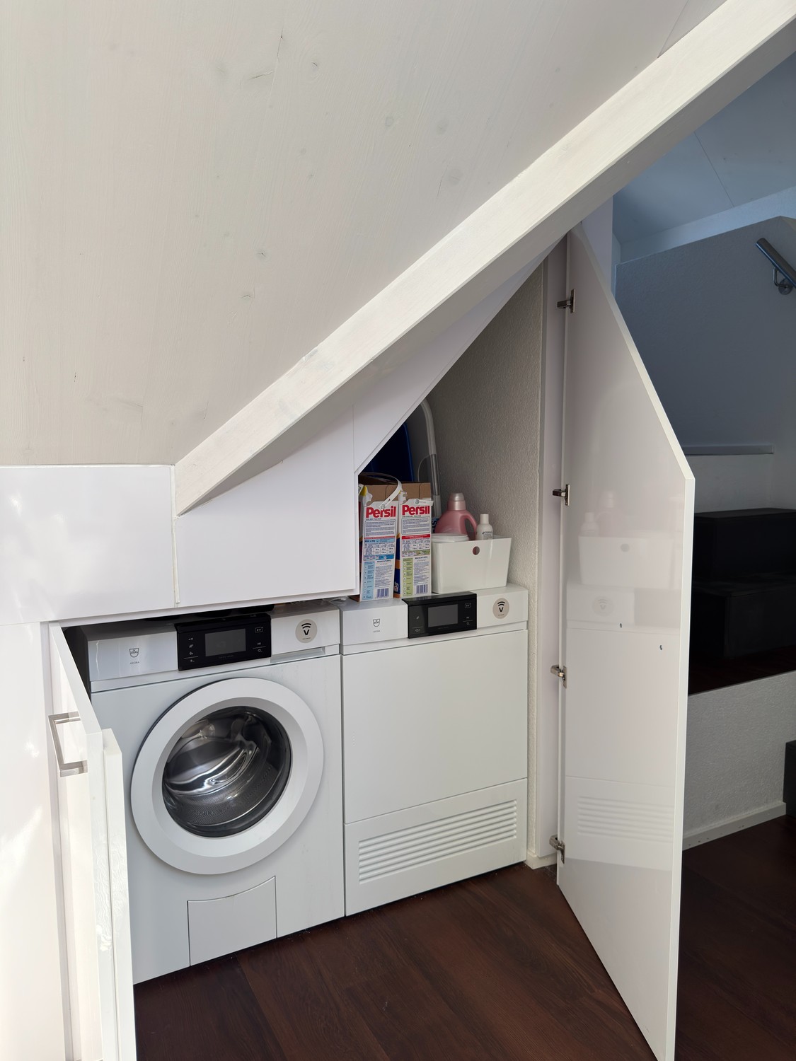 Eigener Waschturm (WM/TU) ist diskret im Reduit verborgen, Kellerabteil, Aussenstellplatz