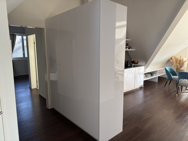 Wir würden uns freuen über die Übernahme des bereits eingerichteten Kleiderschrankes, welche sich über die gesamte Wandfläche des 2. Zimmer erstreckt.