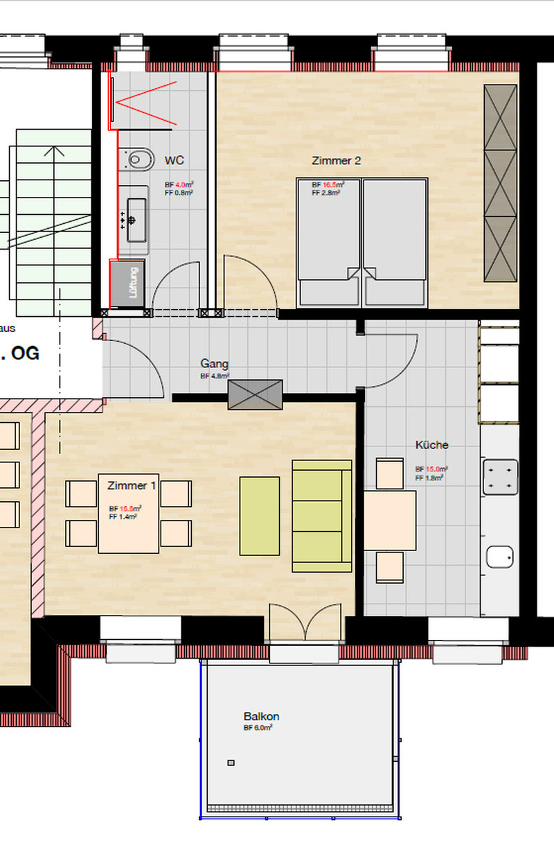 - Hochwertiger Eichenparkett in sämtlichen Wohnräumen