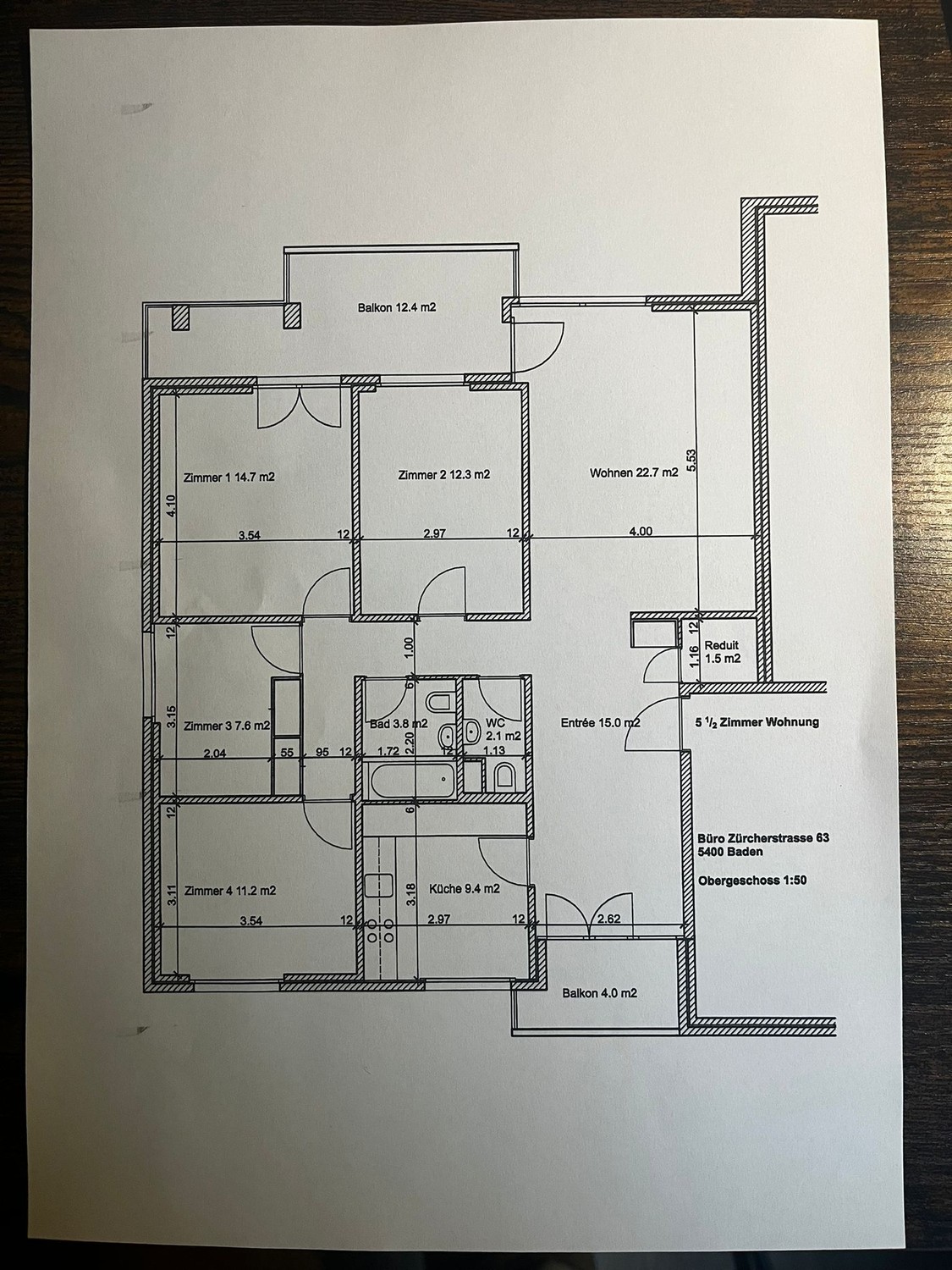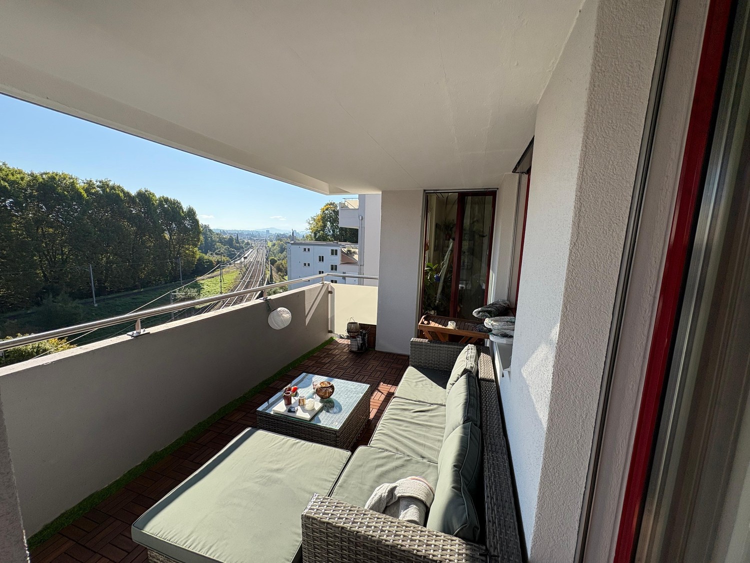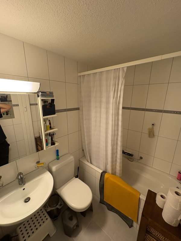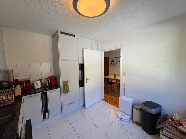 The available room is unfurnished and the rent is CHF 720/month. The apartment has 2 bathrooms, a large living room, a fully equipped kitchen, and 2 balconies. It's about a 15 minute walk to Baden train station, or you can take the bus right outside the house. The apartment block is directly across from a forest with walking trails, is a short walk to the Limmat river, and is close to restaurants and stores.