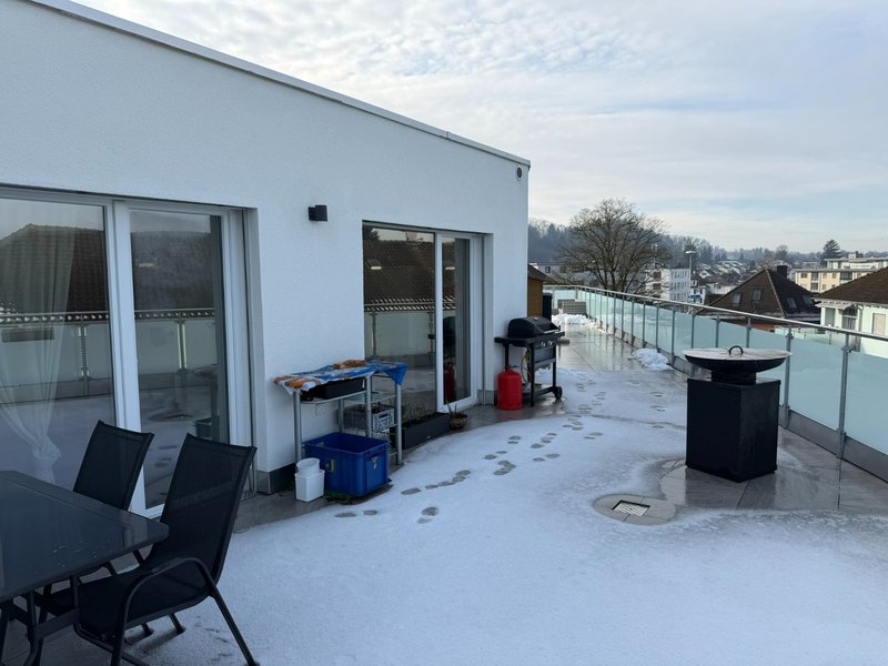 Willkommen in Ihrem luxuriösen Zuhause! Diese moderne 3.5-Zimmer-Wohnung im Attikageschoss, erbaut im Jahr 2023, bietet höchsten Wohnkomfort und zeitgemässen Stil. Der Aufzug bringt Sie direkt in Ihr Reich, wo Sie von einer grosszügigen Terrasse mit 110 Quadratmetern empfangen werden, die einen atemberaubenden Panoramablick bietet.