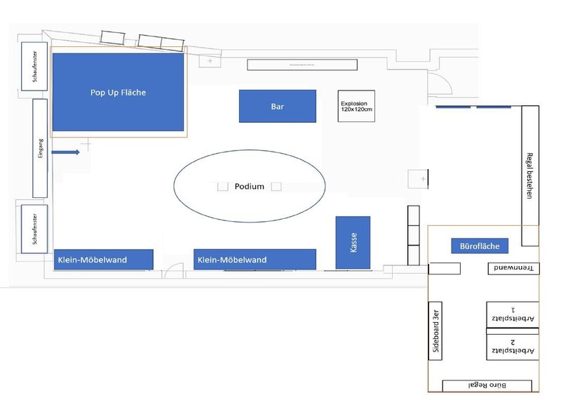 Die Nutzung ist als Kooperation mit unserer Marke SYSTEM4 gedacht und sollte inhaltlich dazu passen. Optional steht zusätzlich eine Büro- bzw. Coworking-Fläche von rund 16 m² mit zwei Arbeitsplätzen zur Verfügung.