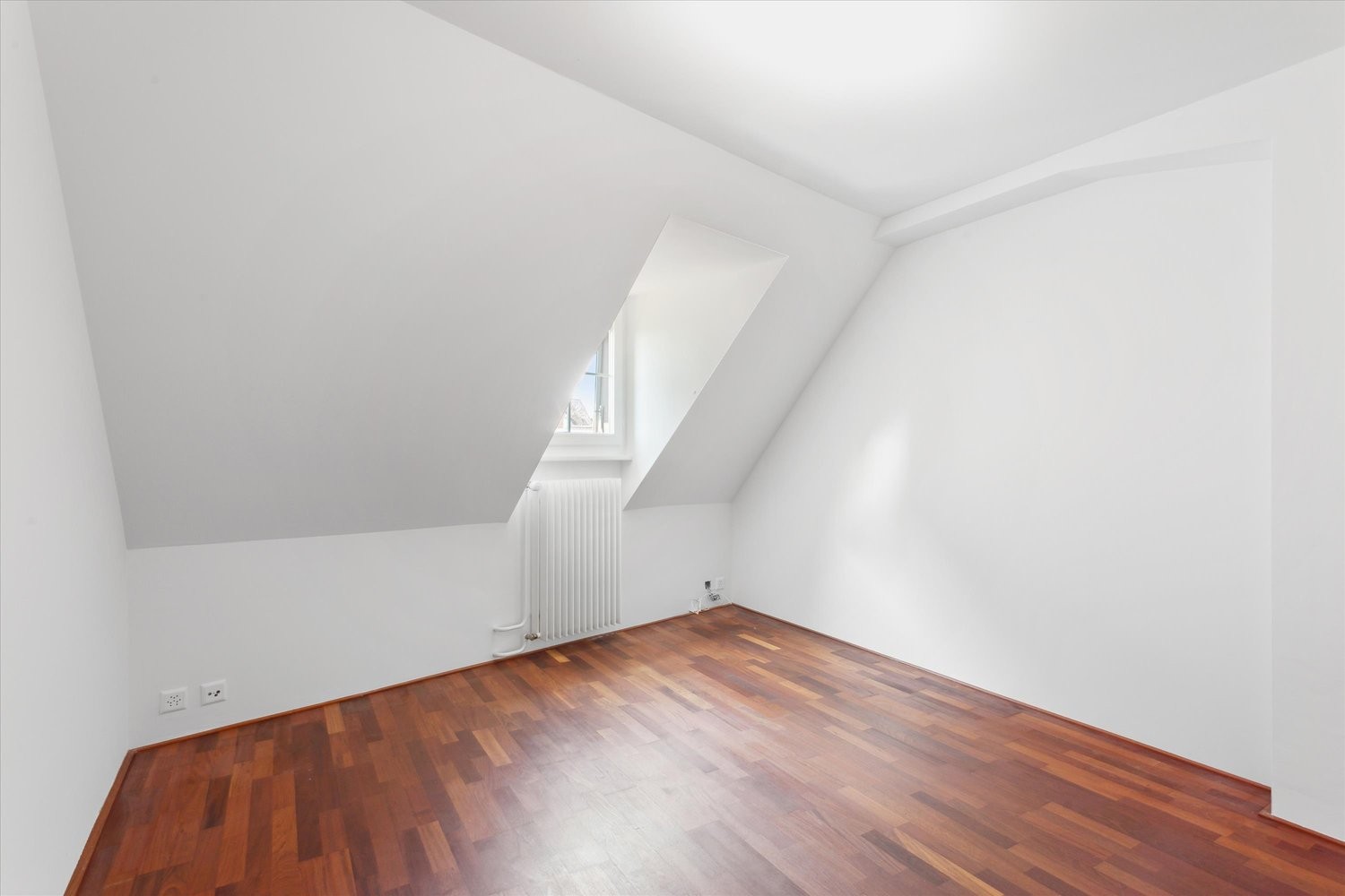 - Dunkler Echtholzparkett und Plattenböden